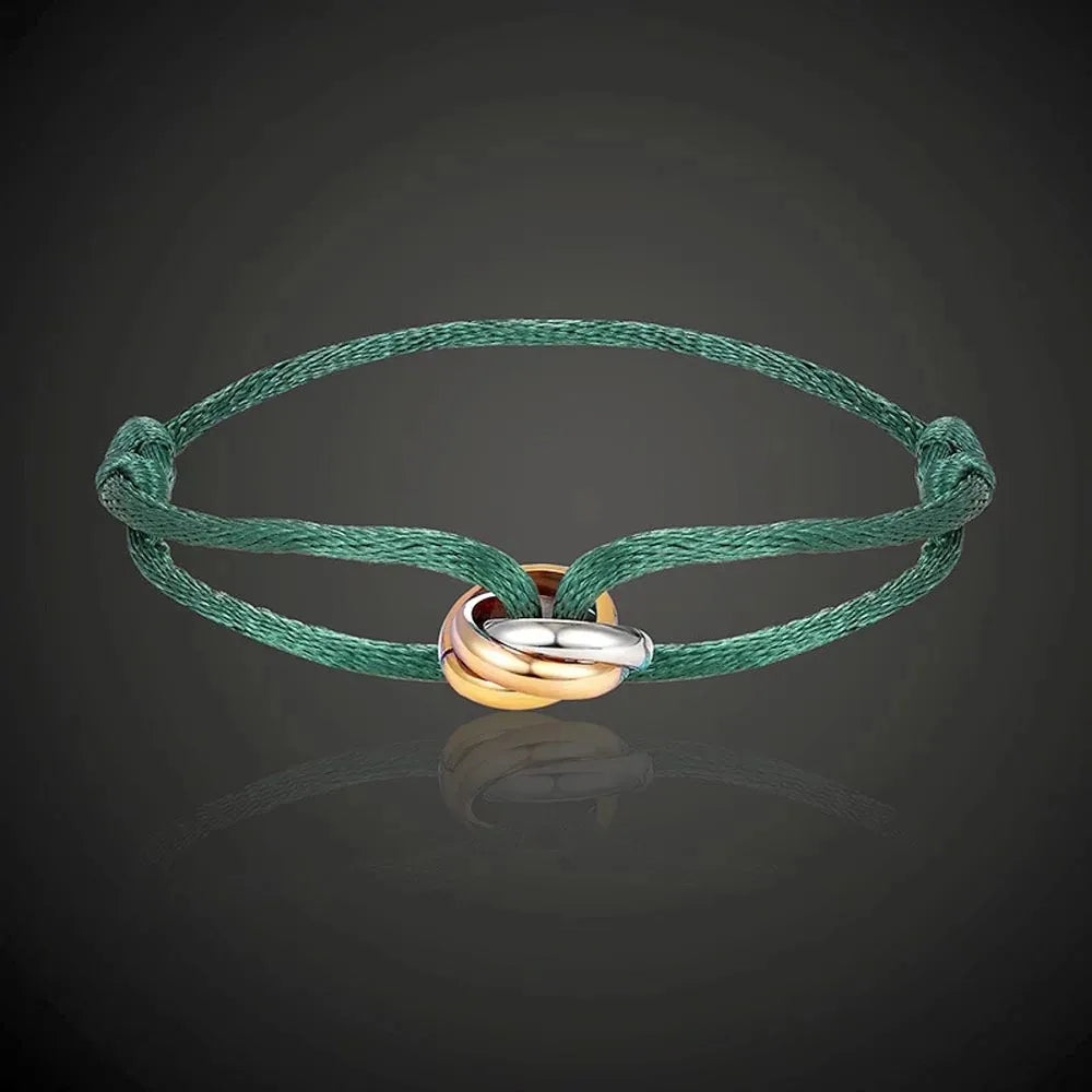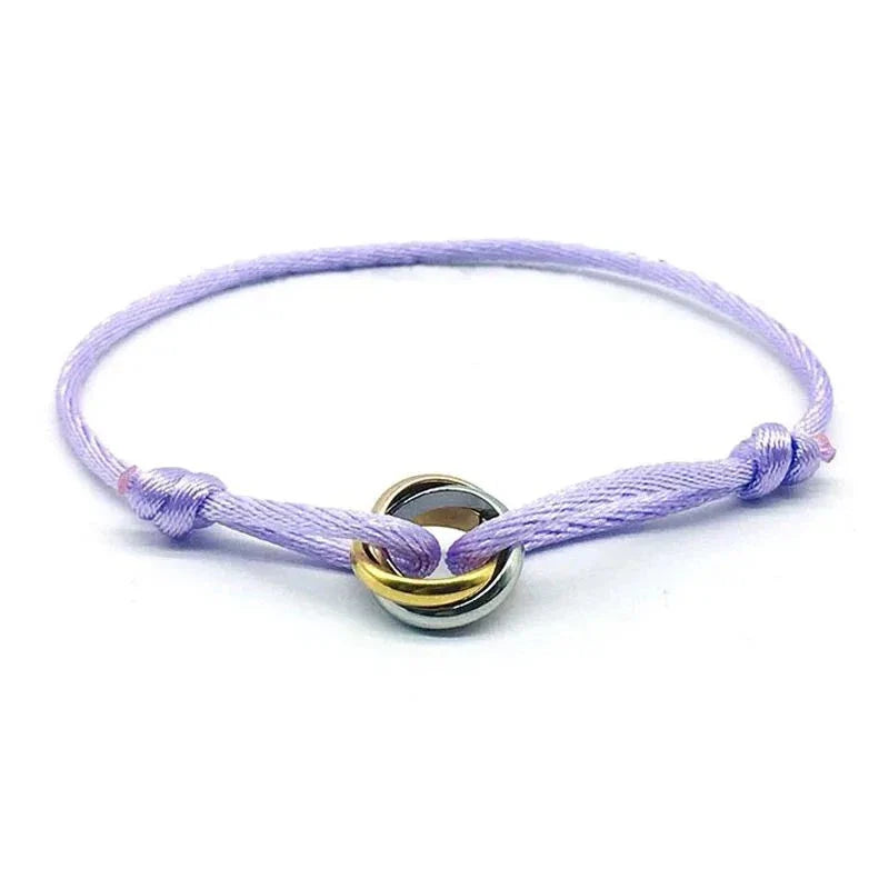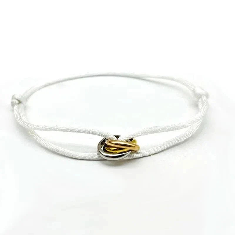 Fall in love with our Three Ring Interlock Love Friendship Bracelet! Crafted with adjustable rope braided design, this bracelet symbolizes the unbreakable bond of friendship and love. Showcase your affection with a stylish touch.