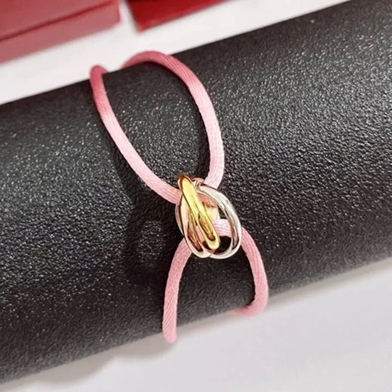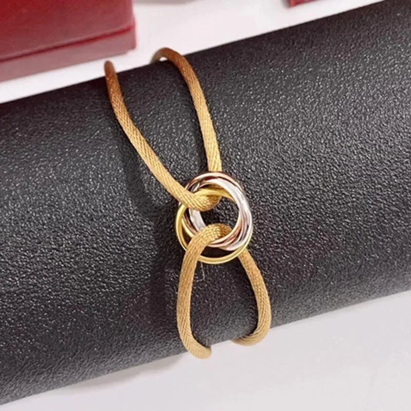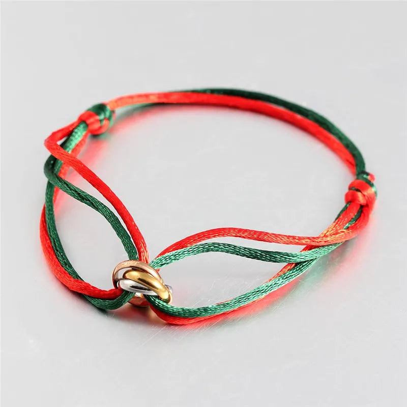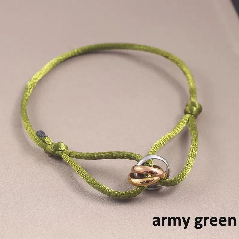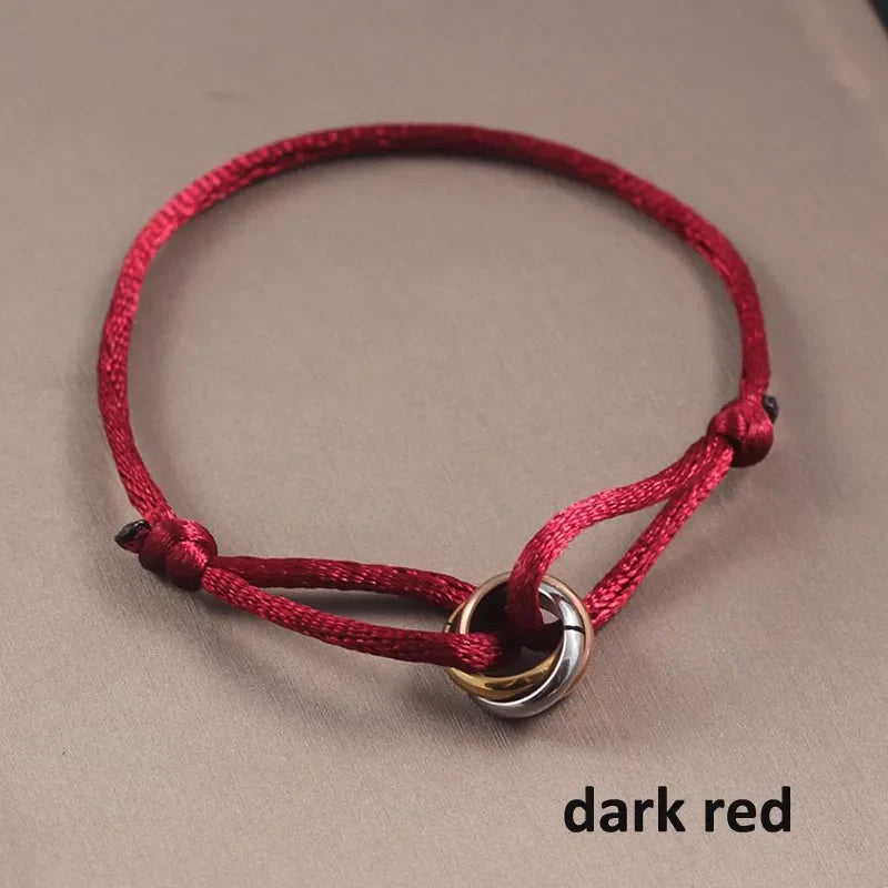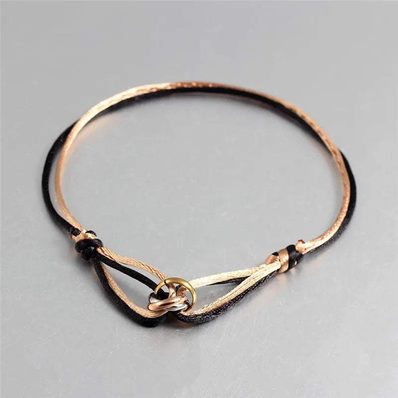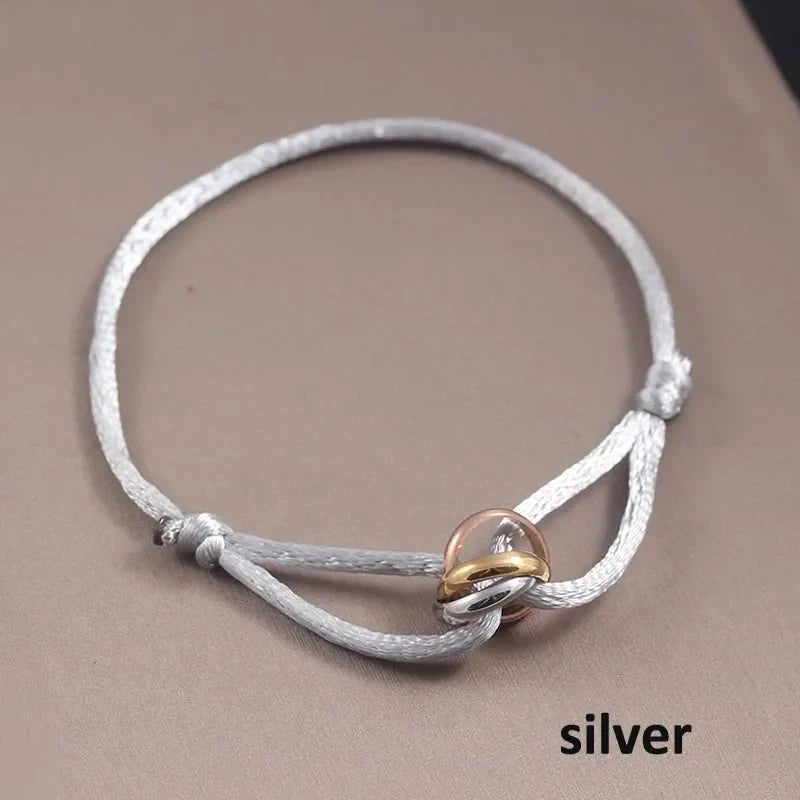 Whether you're celebrating a special occasion or simply want to showcase your affection, this bracelet is the ideal accessory. Its punk style and elegant design make it suitable for both casual and formal outfits alike. Elevate your accessory game with the Three Ring Interlock Love Friendship Adjustable Rope Braided Bracelet and let love and friendship shine through.