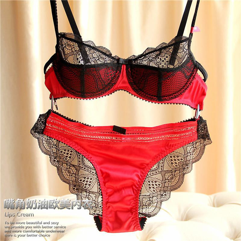 Indulge in the allure of the Top Fashion women's single-bra thin lace embroidery sexy push up transparent underwear set and embrace your inner confidence!