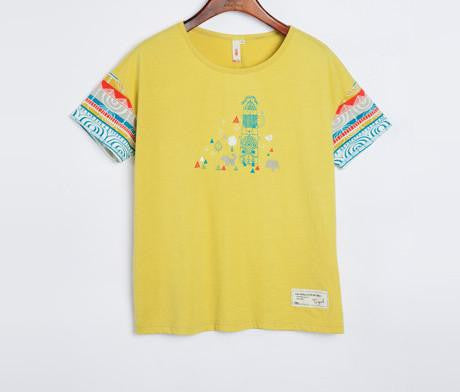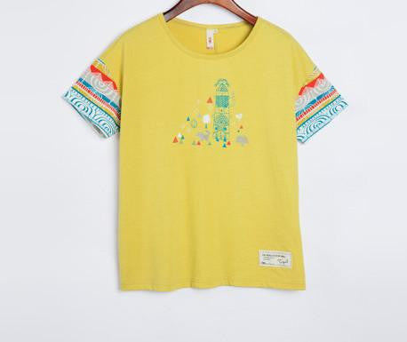 Featuring a vibrant geometric print, this t-shirt is not only fashionable but also adds a pop of personality to your outfit. The O-neck collar and regular fit make it a versatile choice that pairs effortlessly with jeans, shorts, or skirts.