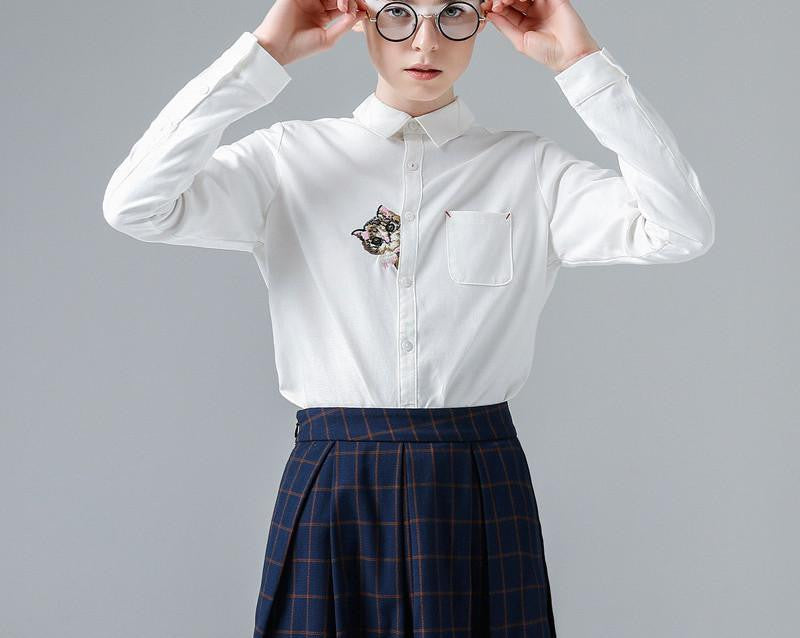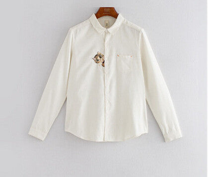 The Women Turn-Down Collar Shirt Female Casual Long-sleeve Cartoon Cat Embroidery Shirt is more than just a piece of clothing; it's an expression of style and comfort. Whether you're heading out for brunch, going to a casual meeting, or simply lounging at home, this shirt will keep you looking chic and feeling great. Don't miss out on adding this charming shirt to your collection!