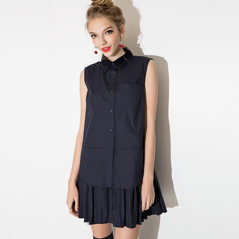 This Summer preppy style layered pleated spliced shirts dress women is not just a dress; it's a wardrobe essential. Pair it with sandals for a relaxed look or dress it up with heels for a night out. Its above-knee, mini length adds a playful touch while maintaining an elegant silhouette.