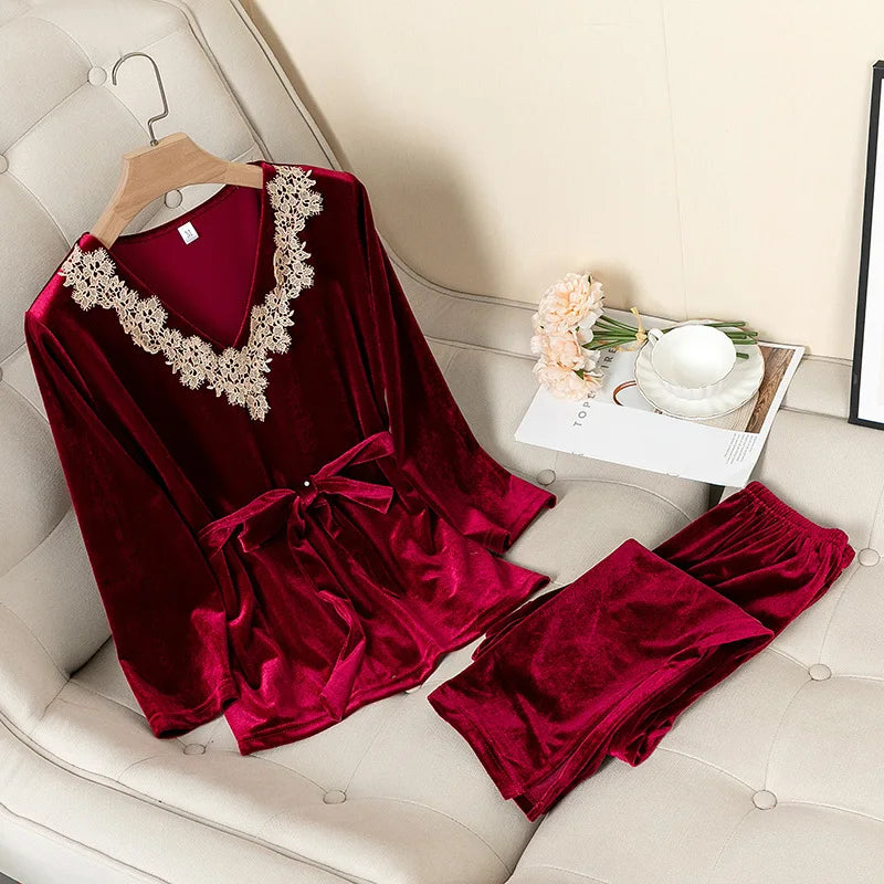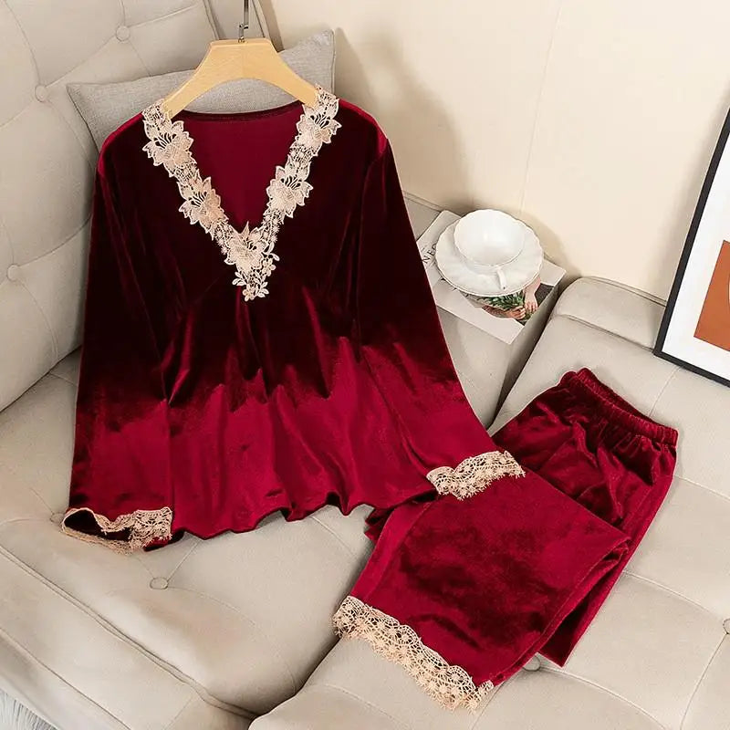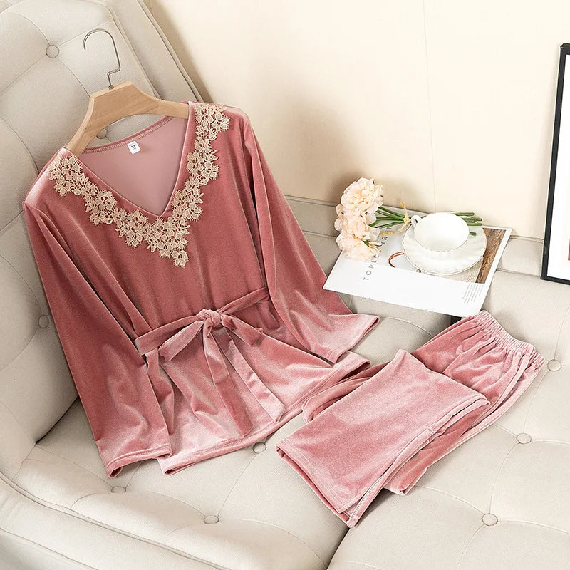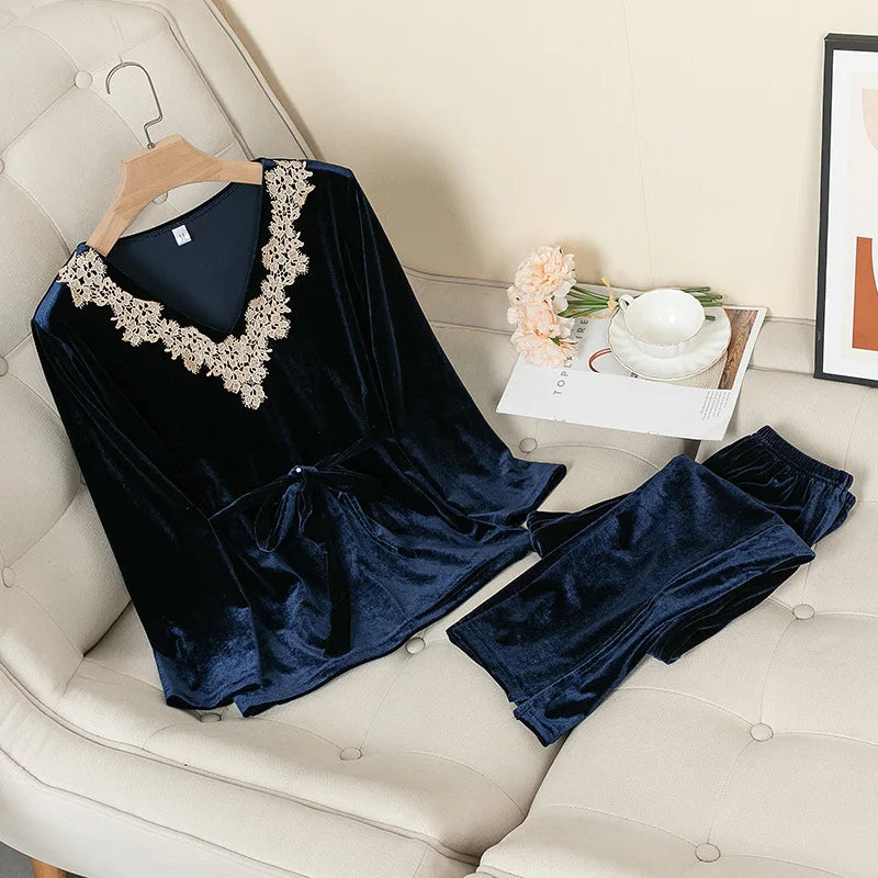 Indulge in the ultimate comfort and relaxation with our Velvet Pyjamas Women Sleepwear set. Featuring a lace trim and loose fit, this casual and stylish nightwear will make you feel like you're sleeping on a cloud. Say goodbye to uncomfortable sleepwear and hello to a peaceful night's sleep.