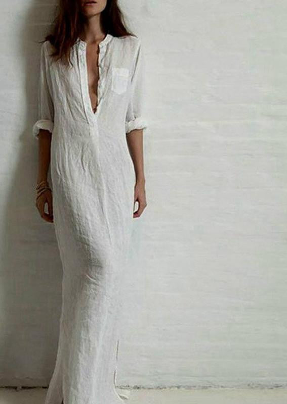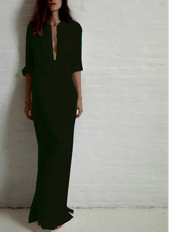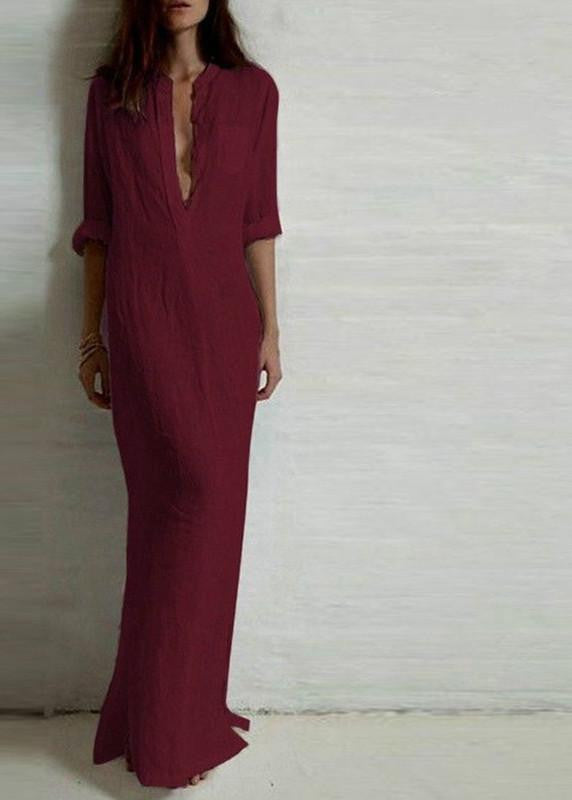 Elevate your autumn wardrobe with our Vestidos Autumn Women Long Dress Elegant Ladies Full Sleeve Deep V Neck Long Line Split Solid Color Floor-length Dress. This exquisite dress combines comfort and elegance, making it the perfect choice for any occasion. Crafted from a blend of high-quality polyester and cotton, it features a chic design that flatters all body types while ensuring breathability and ease of movement.
