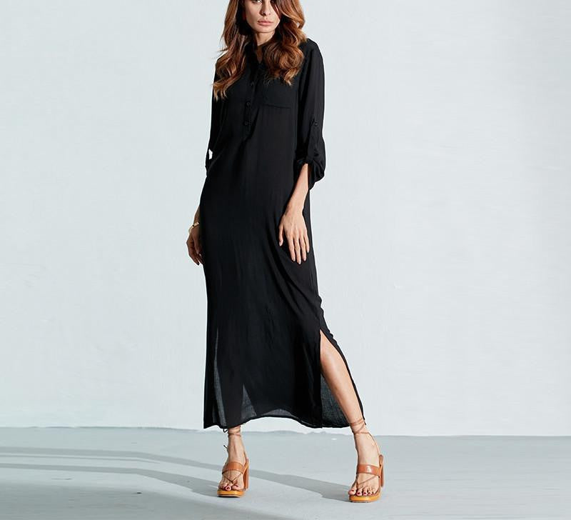 This Vestidos Autumn Women Long Dress is suitable for a variety of settings, whether you're attending a wedding, going to a brunch, or enjoying a night out. The solid color adds timeless elegance, allowing you to accessorize as you please.