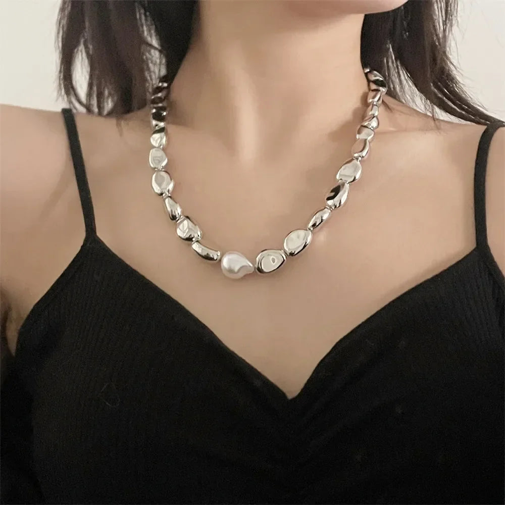 Incorporate the charm of the Vintage Silver-plate Geometric Chain Artificial Pearl Necklace For Women Female Fashion Boho Y2K Girl Jewelry Gift into your style today and make every outfit unforgettable!