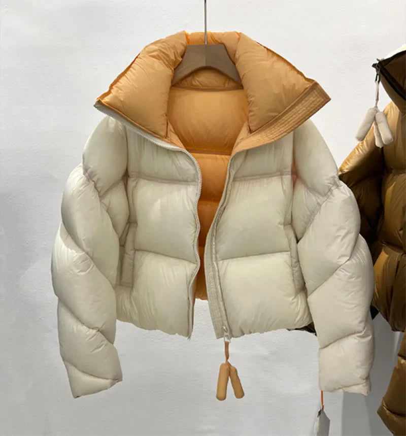 Embrace the cold season in style with our Warm Women's Down Jacket Stand Collar Windproof Short padded jacket Thicken Winter Jacket Korean Loose Parkas Coat Women outwear. This fashionable jacket combines both warmth and elegance, making it an ideal choice for winter outings. Designed with a stand collar and windproof features, it ensures you stay cozy while looking chic.
