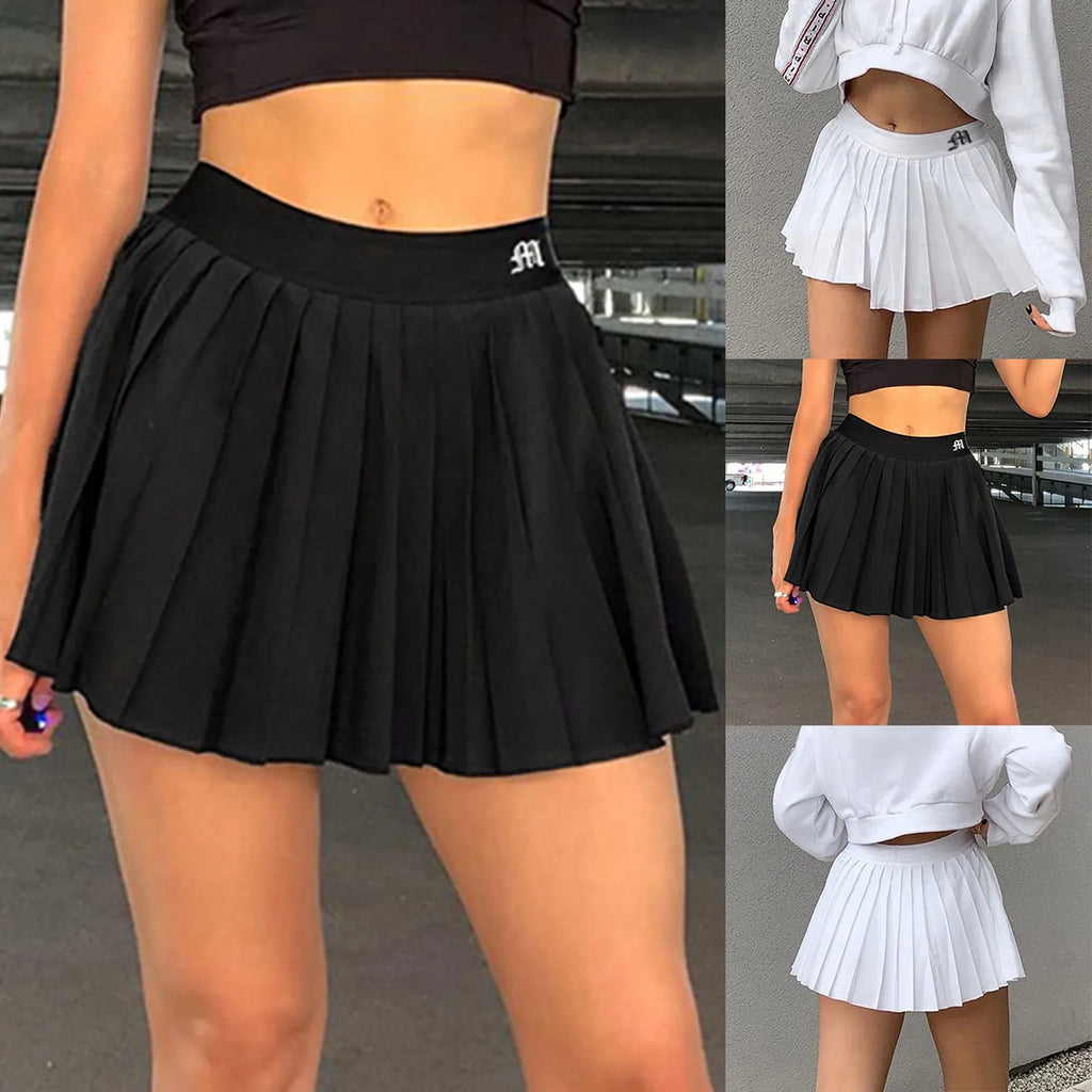 Unleash your daring spirit with our White Women Pleated Skirts! Perfect for summer and dancing, these high waist skirts feature a stylish zipper and bold letters. Master the fashion game and make a statement with our black A Line mini skirts.