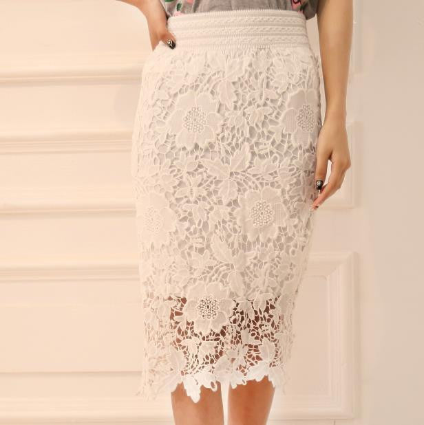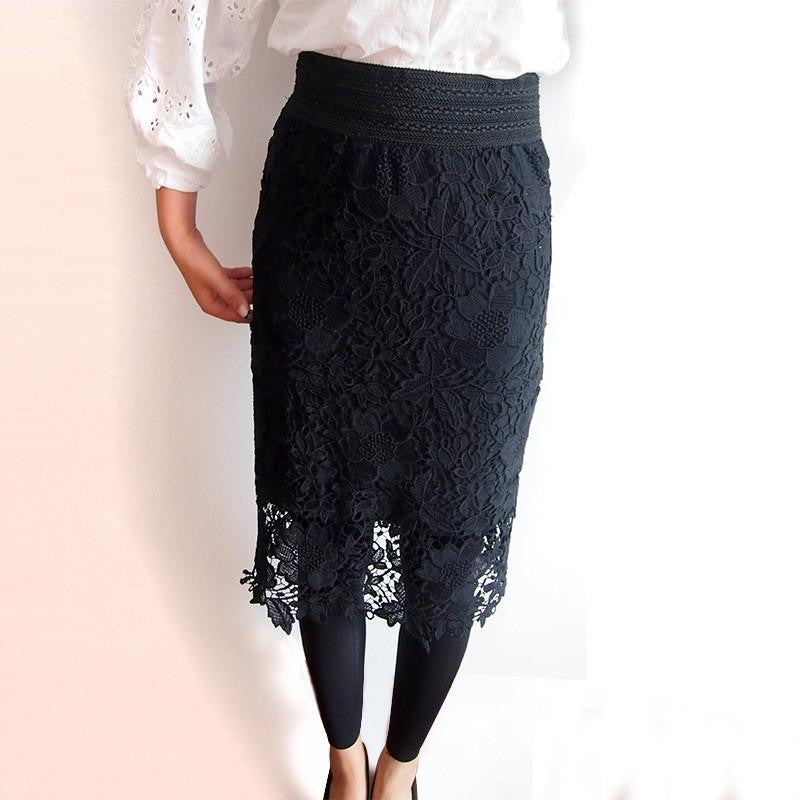 Elevate your wardrobe with this exquisite lace skirt that combines comfort, elegance, and versatility. Order your Women Lace Skirt A-Line Hollow Out White Black SKirt Knee Length Plus Size S-3XL today and make a statement wherever you go!