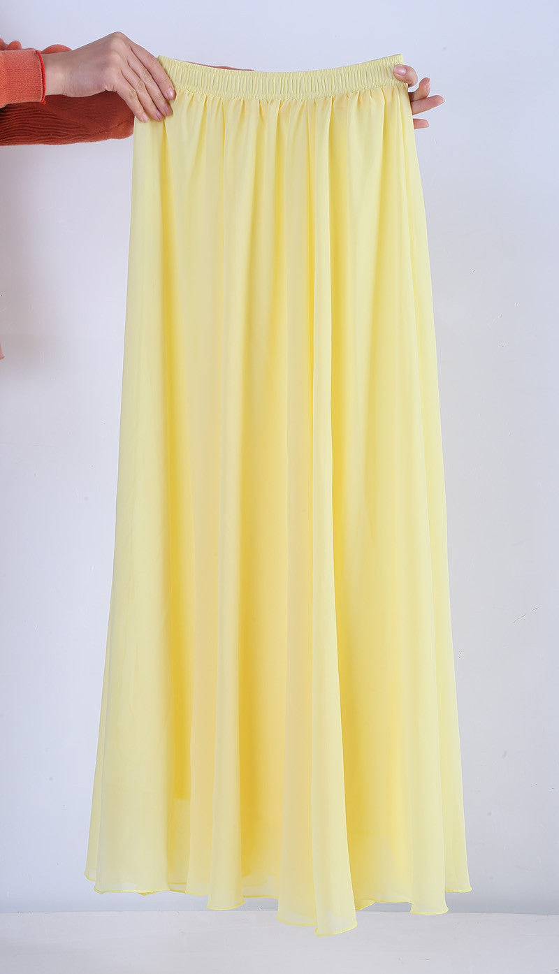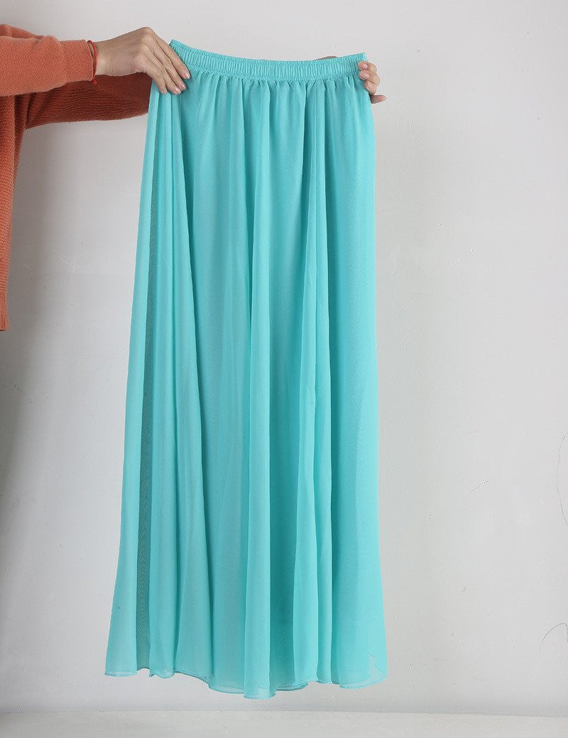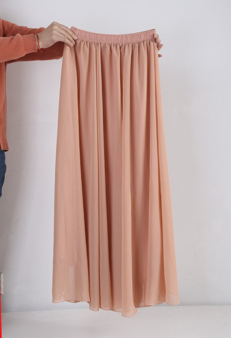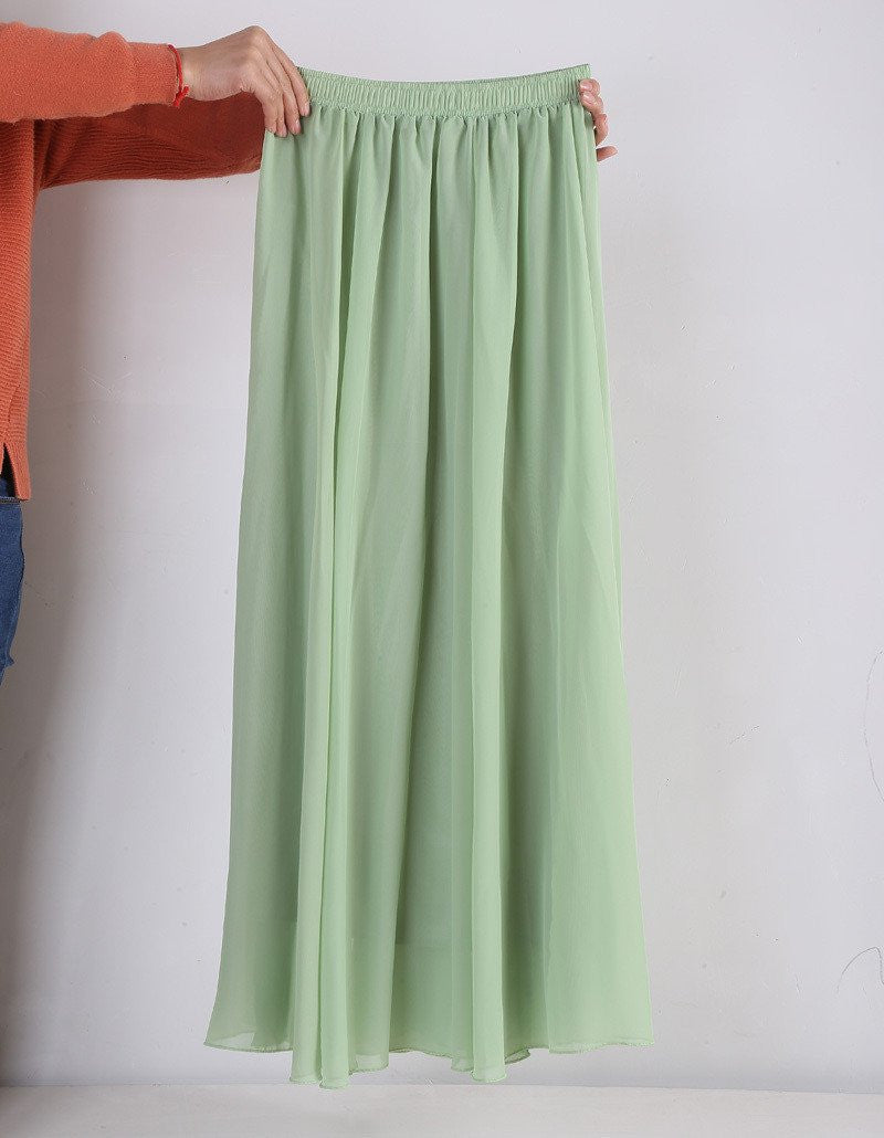 These Women Chiffon Long Skirts Candy Color Pleated Maxi Skirts Spring Summer Skirts are not just a fashion statement; they are a combination of comfort and style. The natural waistline and flowing fabric cater to all body types, ensuring a flattering fit. Whether paired with a simple top or dressed up with accessories, these skirts will enhance your style effortlessly.
