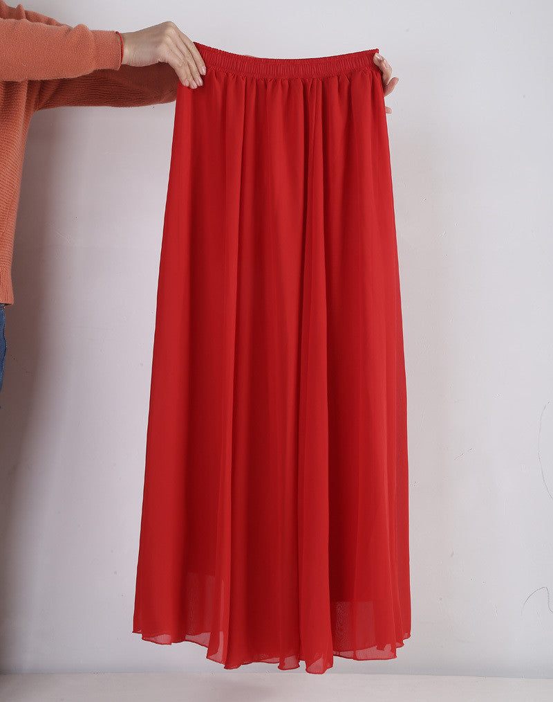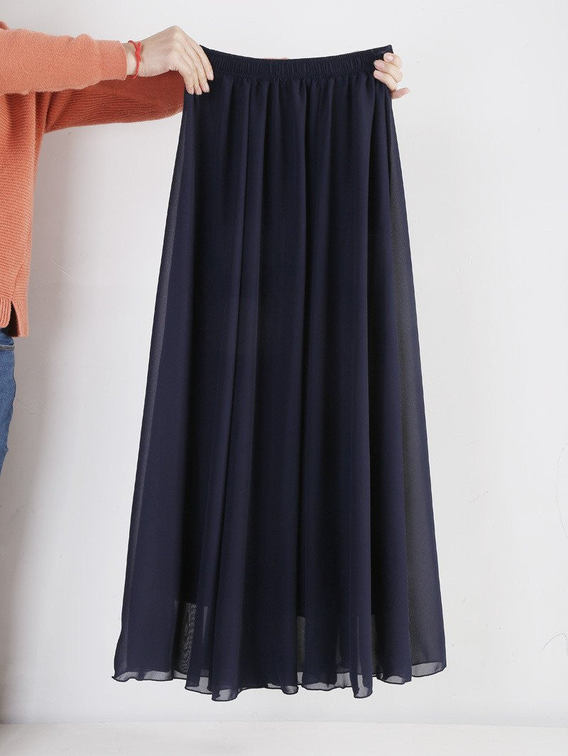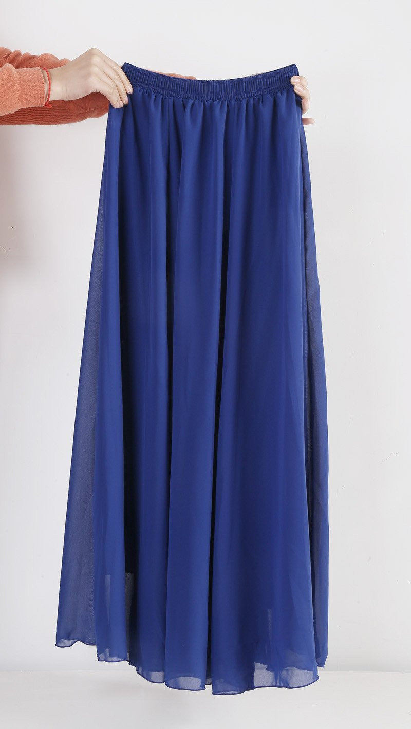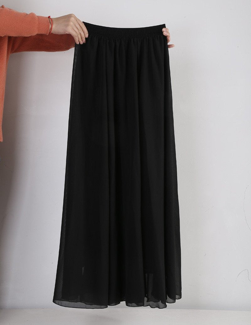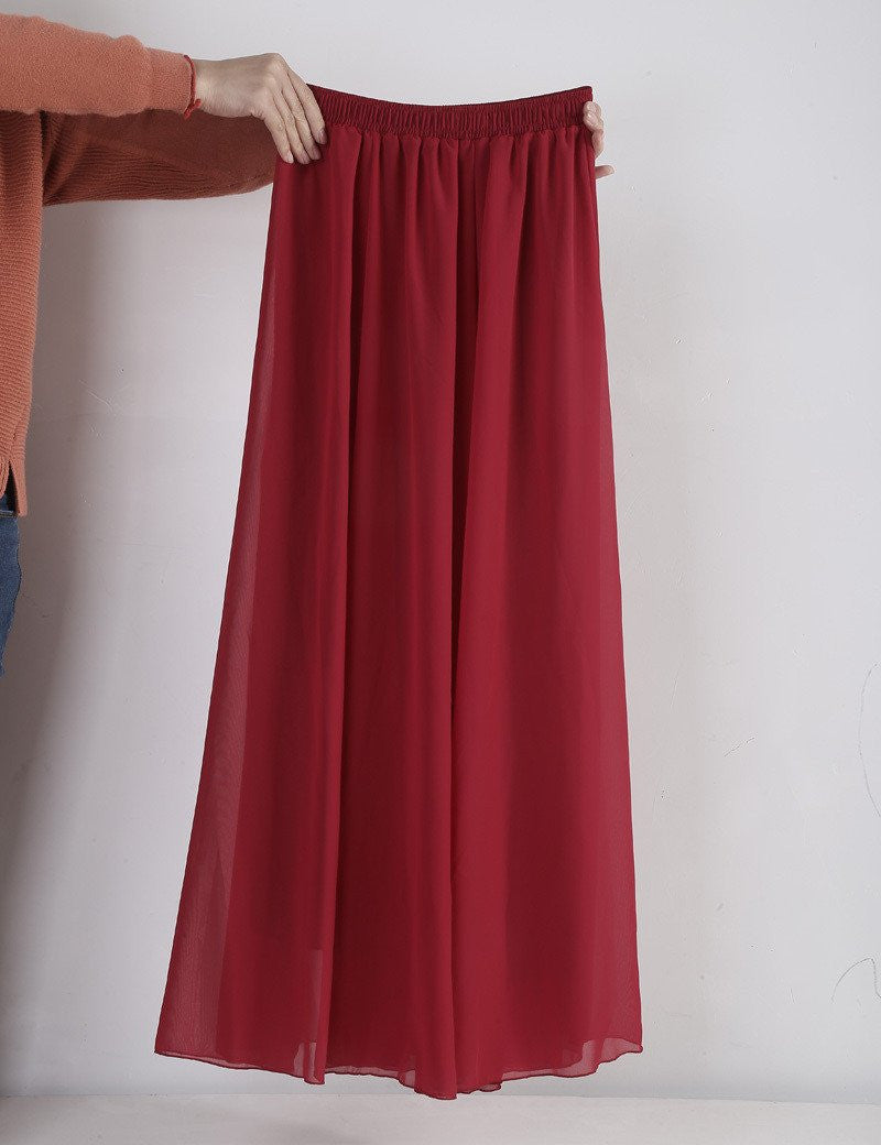 These Women Chiffon Long Skirts Candy Color Pleated Maxi Skirts Spring Summer Skirts are not just a fashion statement; they are a combination of comfort and style. The natural waistline and flowing fabric cater to all body types, ensuring a flattering fit. Whether paired with a simple top or dressed up with accessories, these skirts will enhance your style effortlessly.
