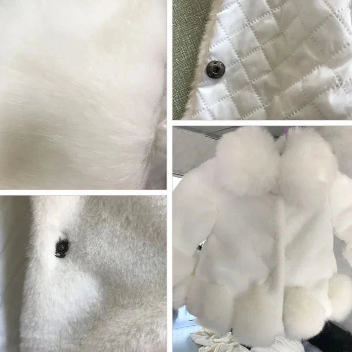 This Winter Jacket Kids Girl Parkas Cute Warm Wedding Faux Fur Coat is not just a coat; it's a statement piece that combines style and warmth. Whether she's attending a special event or just playing outside, this jacket will ensure she stays warm and fashionable. Don't miss out on this essential winter wear for your little girl—order today and let her shine this winter!