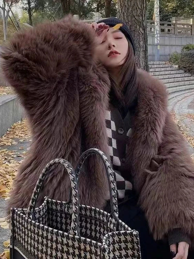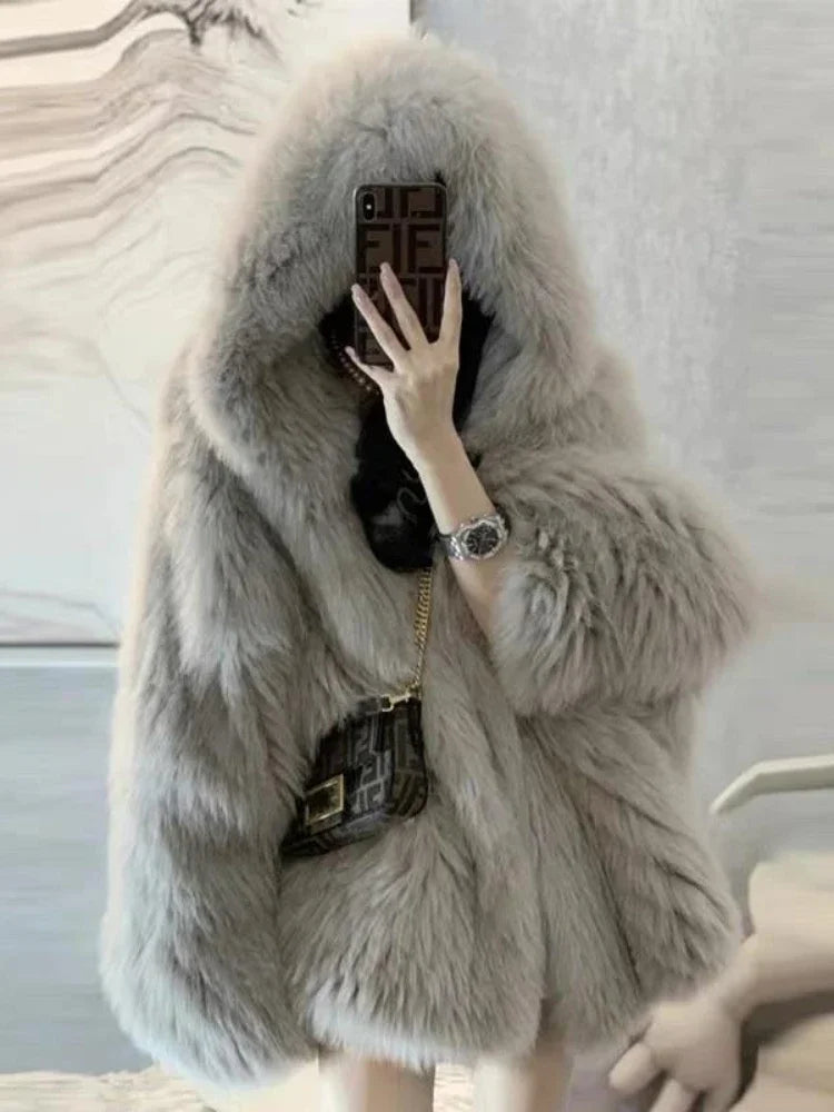 Don't let the cold weather cramp your style. The Winter Jackets Faux Fur Coat Women Korean Coat Hooded Fur Jacket combines practicality with high fashion, making it a must-have in your wardrobe. Whether you're heading out for a casual day with friends or a brisk walk in the park, this coat will keep you warm and stylish.
