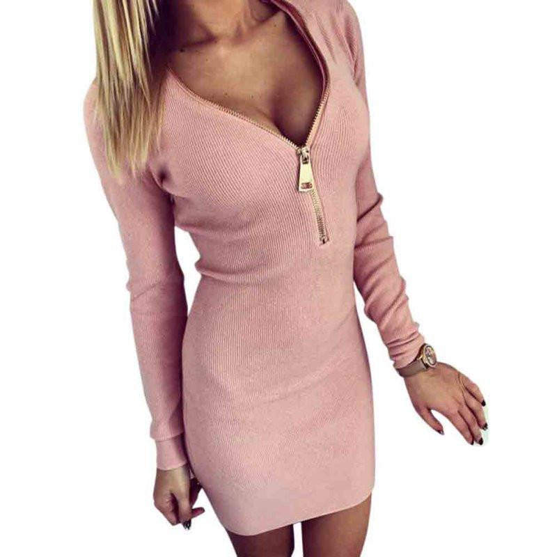 Experience elegance and comfort with our Women Zip V Neck Party Dresses Ladies Long Sleeve Winter Slim Bodycon Ukraine Mini Dress Vestidos. This exquisite dress is designed for the modern woman who values style and functionality. Perfect for autumn and winter occasions, it features a flattering V-neckline and a chic zipper detail that adds a touch of sophistication.