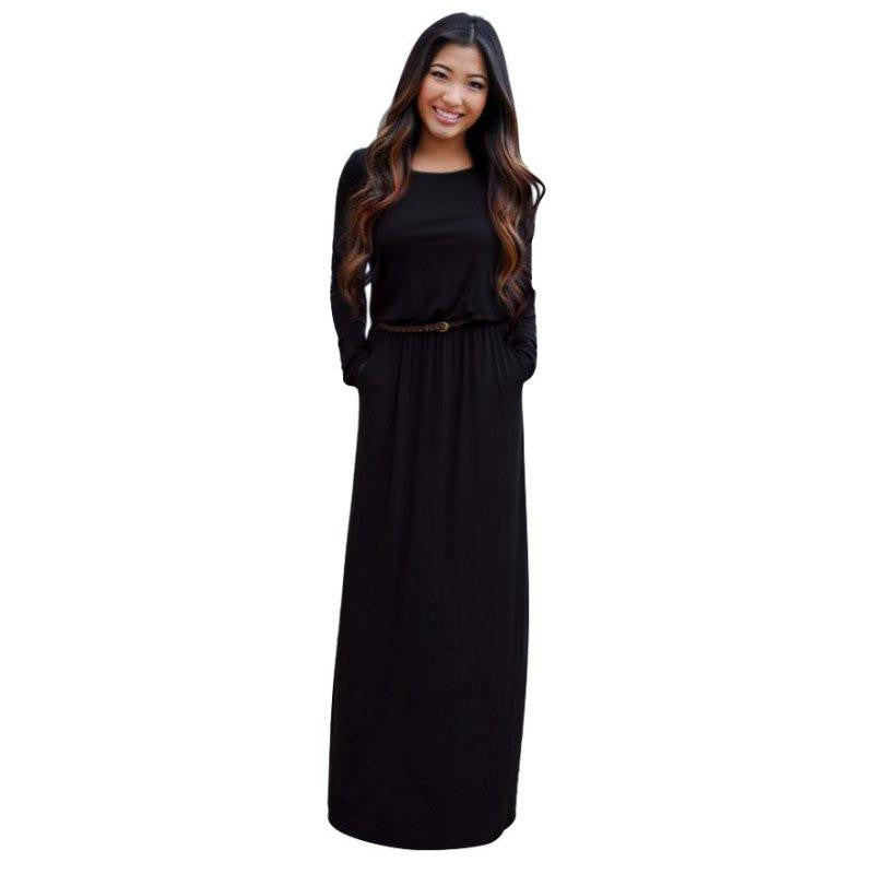 Look graceful in this full length maxi dress. This long sleeve dress is solid and comes with pockets at the side.