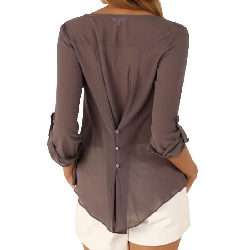 Look the part with this chic chiffon shirt. Can be worn with an appropriate bottom. Feel confident and comfortable in these beautifully designed pieces. Available in full sizes for women.