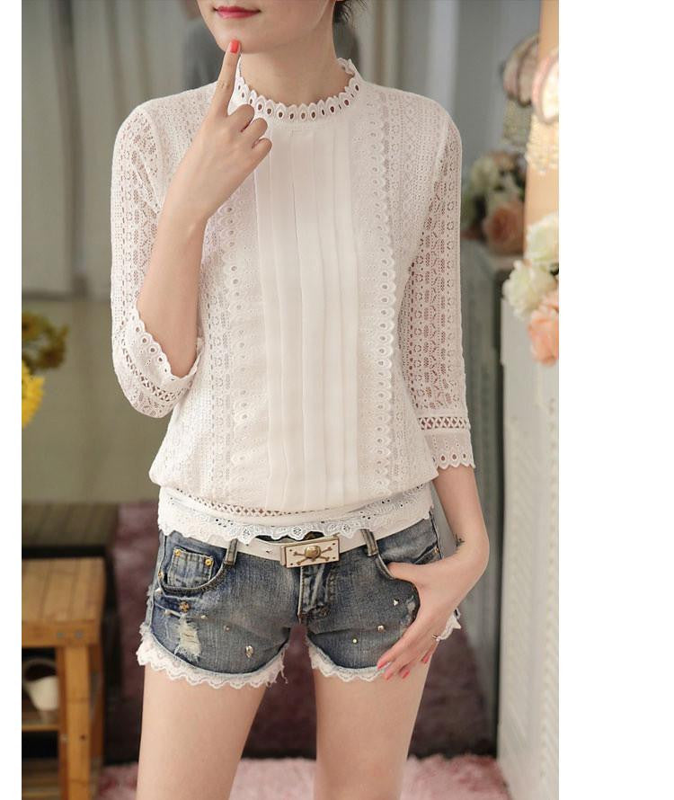 Don't miss out on adding this stunning women casual white lace blouse fashion sexy 3/4 sleeve stand collar crochet tops shirt clothes A633 to your collection. Shop now and redefine your casual chic look!