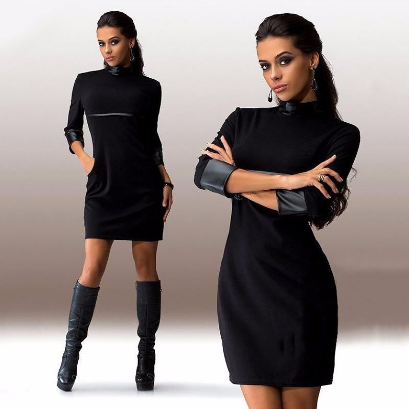 The Women Autumn Cool Dresses Three Quater Sleeve PU Leather Patchwork Clubwear Dress Slim Casual Vestidos Robe XS-XL is more than just a dress; it's a statement piece that embodies confidence and elegance. Make a lasting impression wherever you go with this unique blend of comfort, style, and functionality.