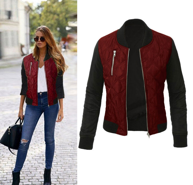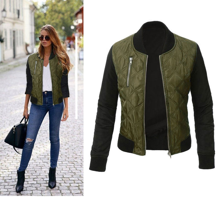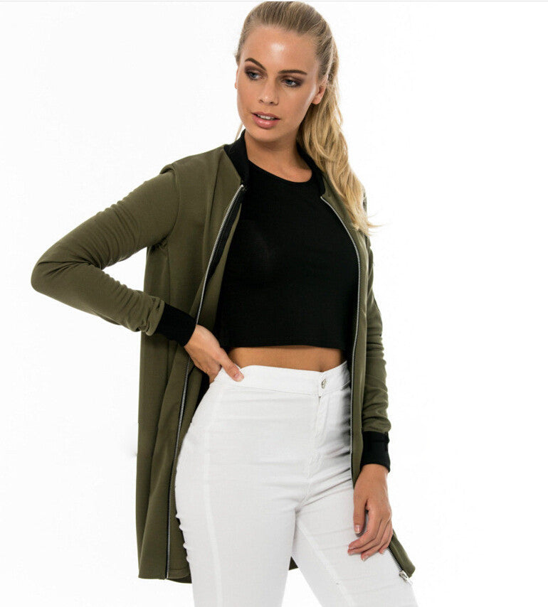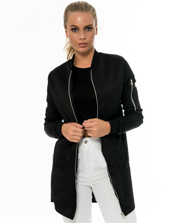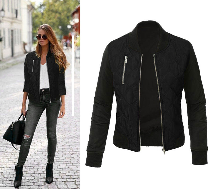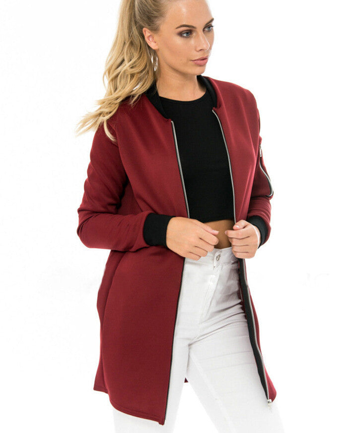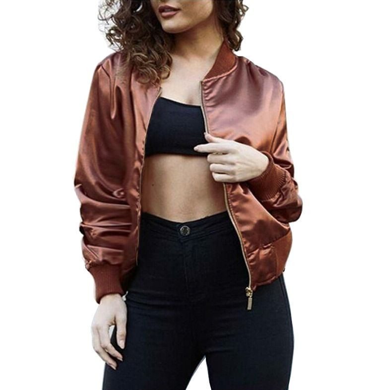Fashionable women bomber jacket with long sleeves. An important outfit for casual outings.