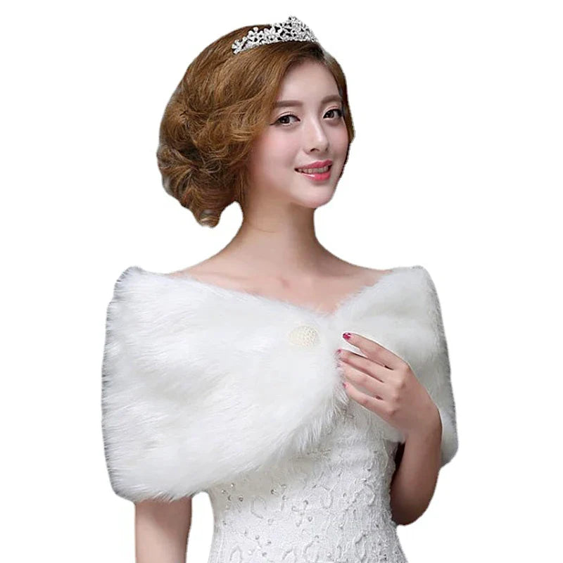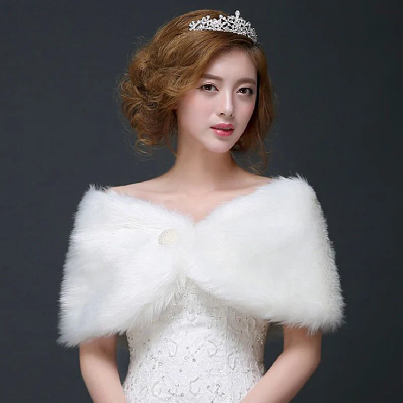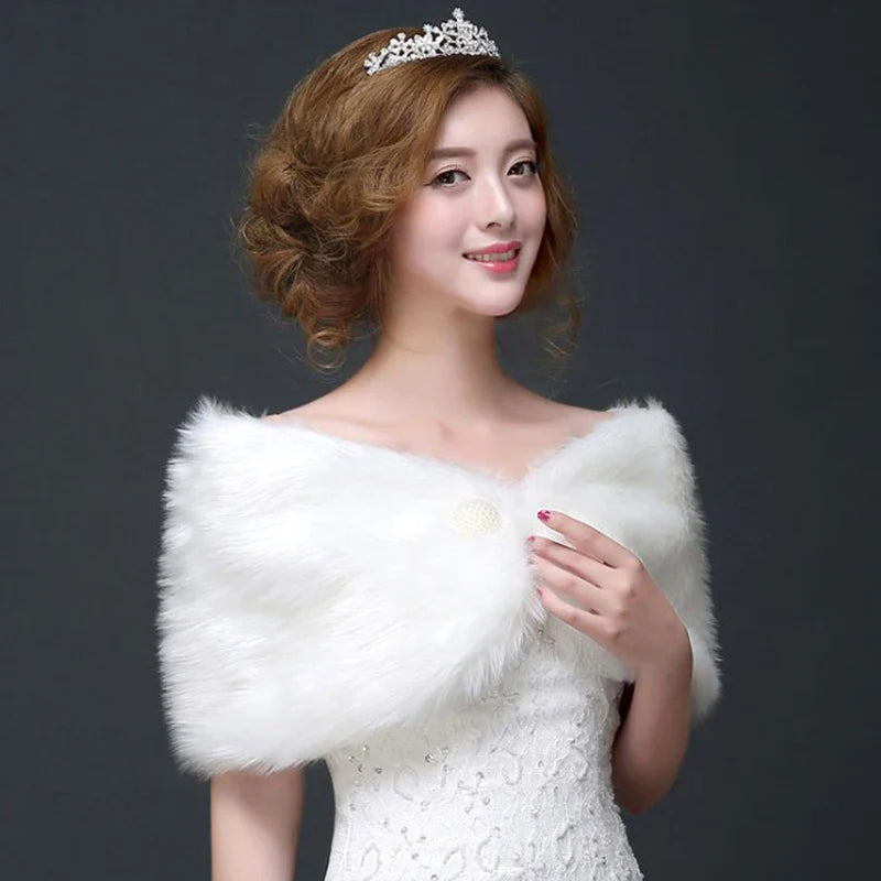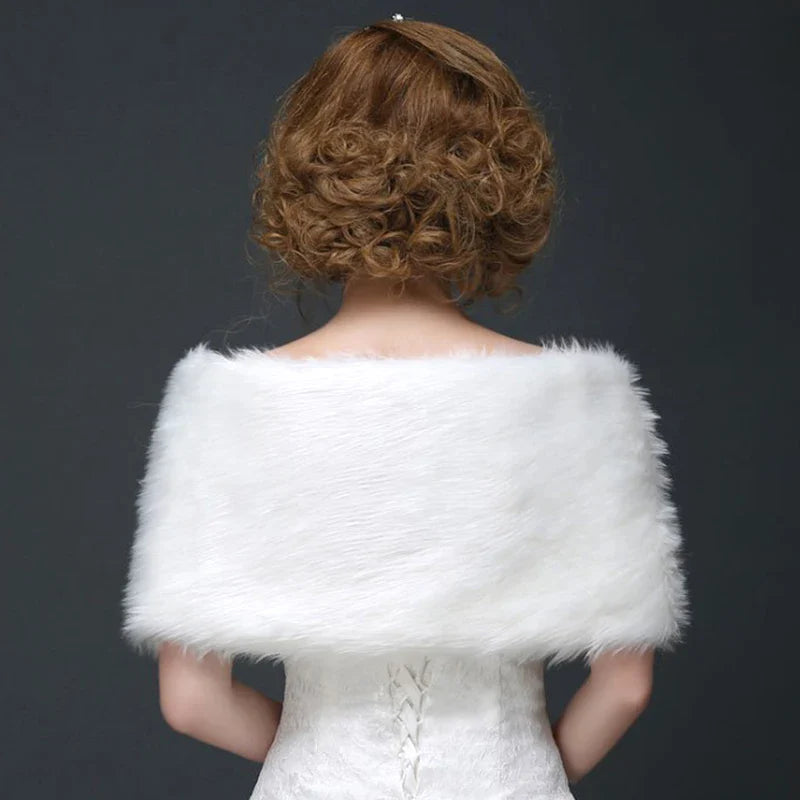 Crafted with care, this white faux fur shawl is not only a fashion statement but also a functional piece to combat the winter chill. Whether you're saying "I do" or celebrating at a lavish evening party, this wrap will keep you snug and stylish, perfect for those outdoor ceremonies or late-night celebrations.