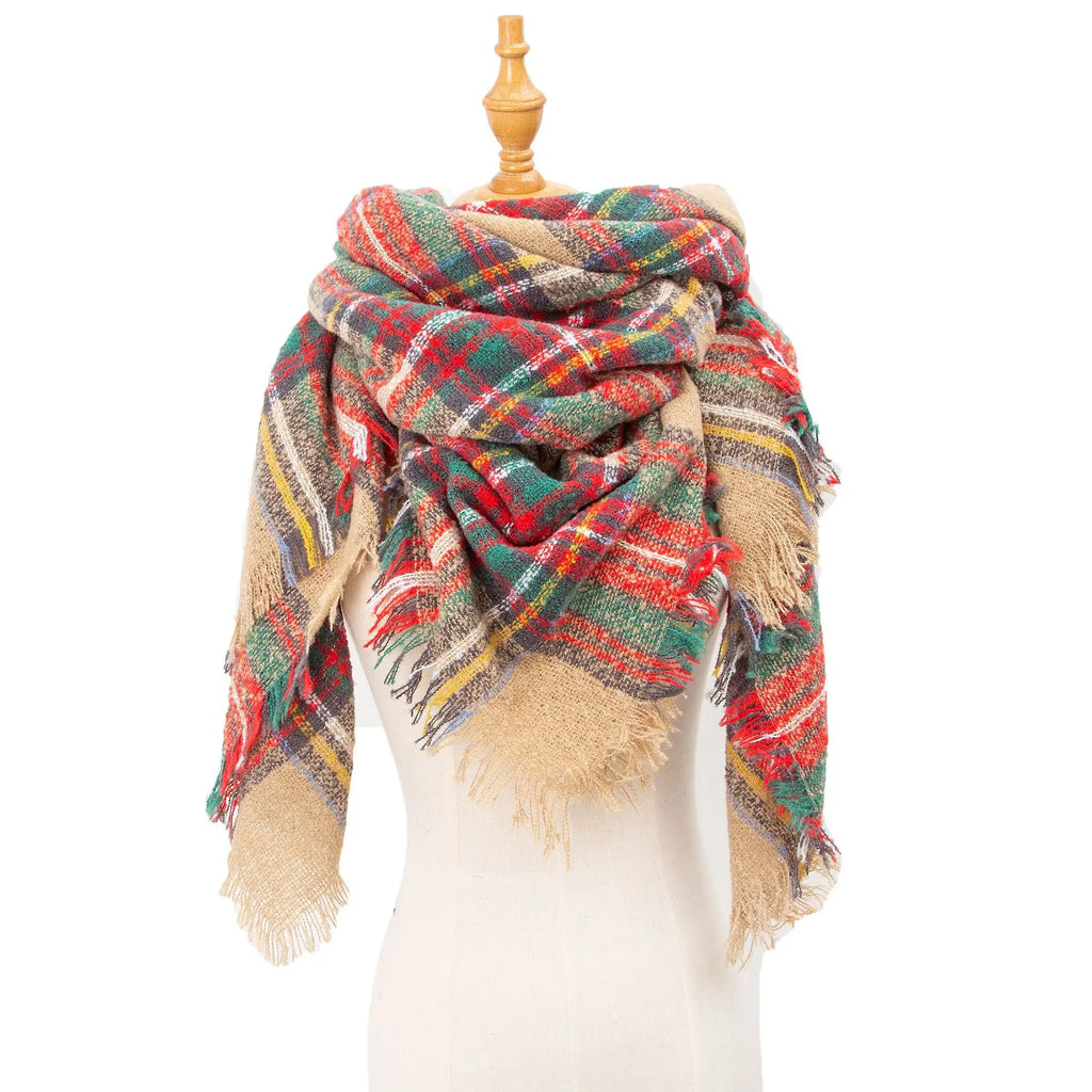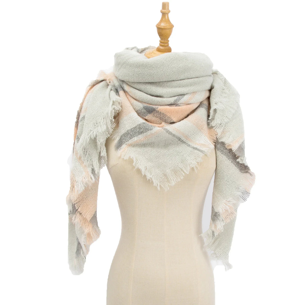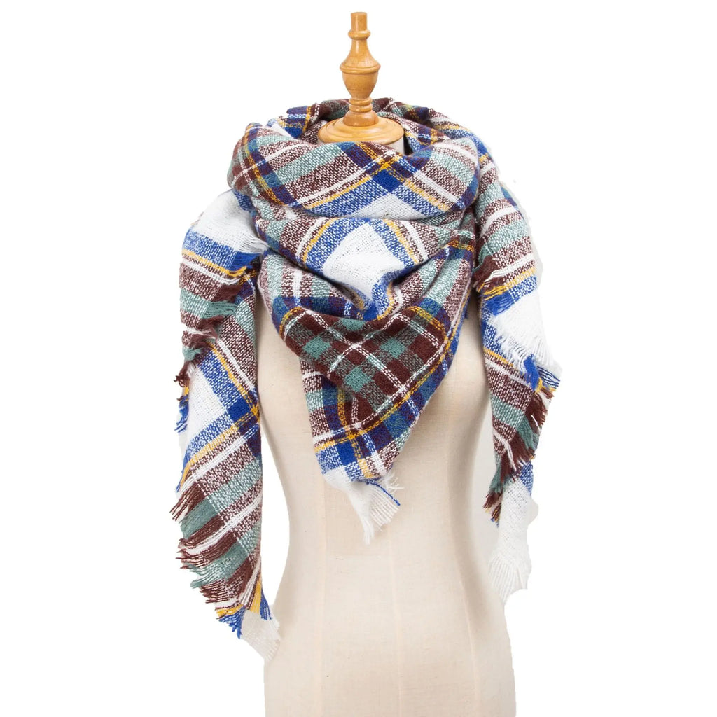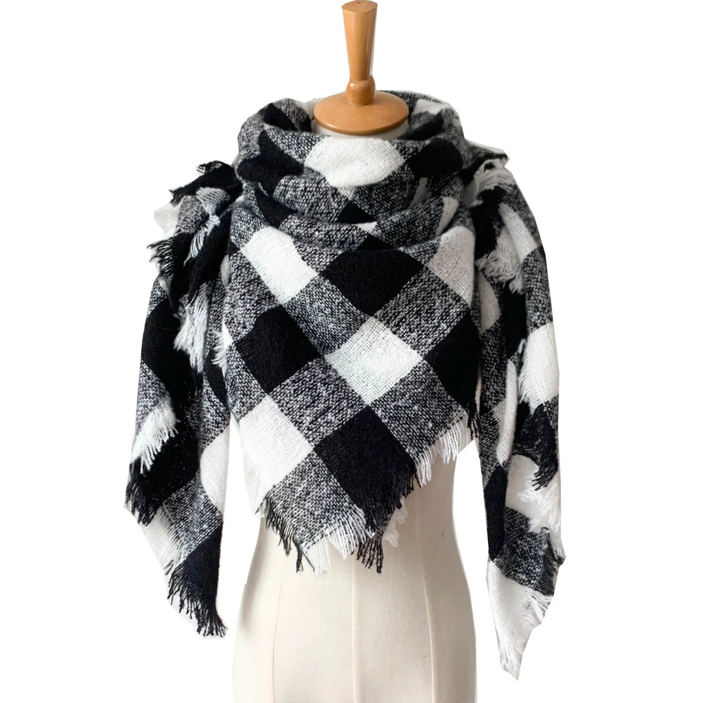 This Women Cashmere Winter Scarf Knit Pashmina Bandana Plaid Female Warm bib Triangle Scarves Ladies Blanket Shawls Clothes Accessory is an essential addition to your winter wardrobe. Whether you are heading out for a casual day or a special evening event, this scarf complements both outfits beautifully. It's not just a scarf; it's a statement piece that will keep you warm and stylish all season long.