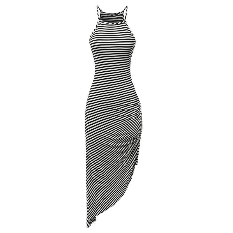 Asymmetrical knee length dress can be yours, get this exciting casual summer dress that reaches the knee and is sleeveless.