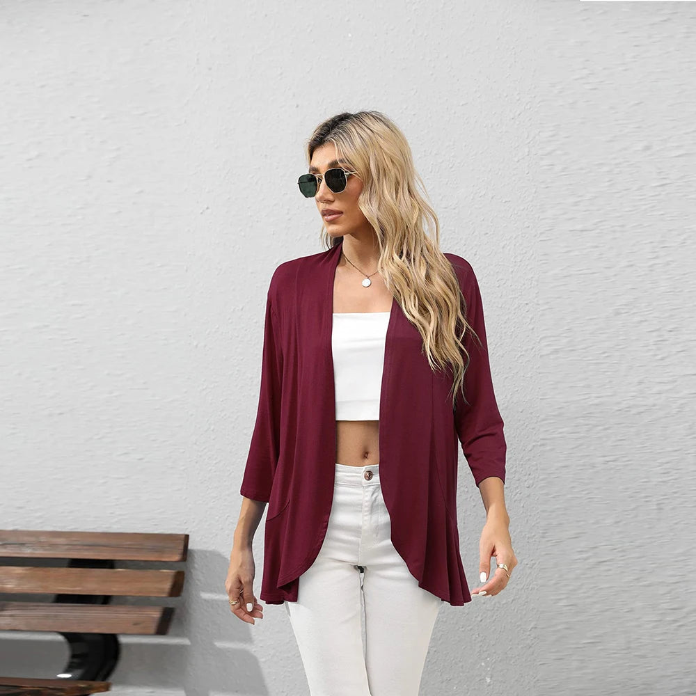Enhance your wardrobe today with this flattering and functional cardigan that every woman should own. Grab your Women Fashion Cardigan Spring Solid Color Cardigan Top Open Stitch Solid Female Autumn now!