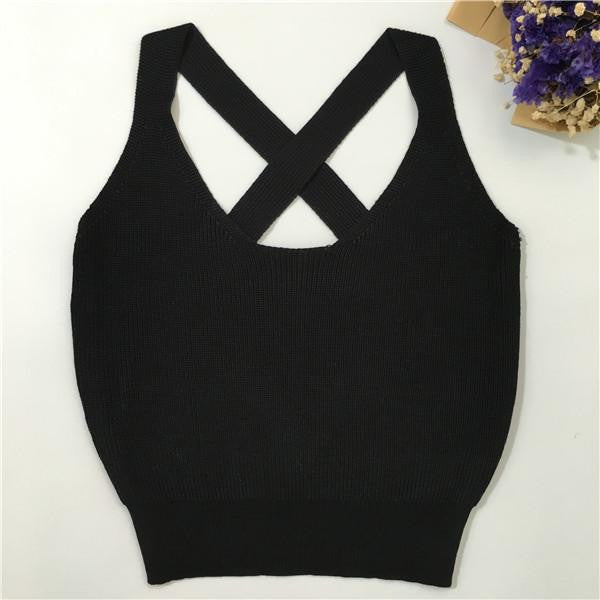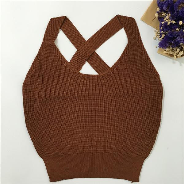 This Women Fitness Crop Top Short Knitted Cami Round Neck Cross Back Women Crop Tops Short Bustier Crop Top not only enhances your silhouette but also boosts your confidence. The short length and fitted design allow you to show off your hard work in the gym while keeping you cool and comfortable. Pair it with high-waisted leggings or shorts for a complete look that transitions seamlessly from workout to weekend.