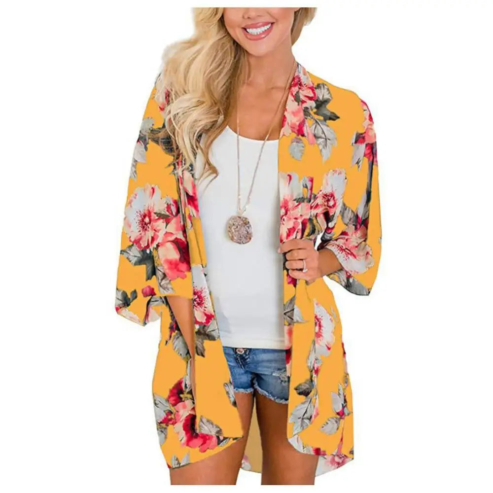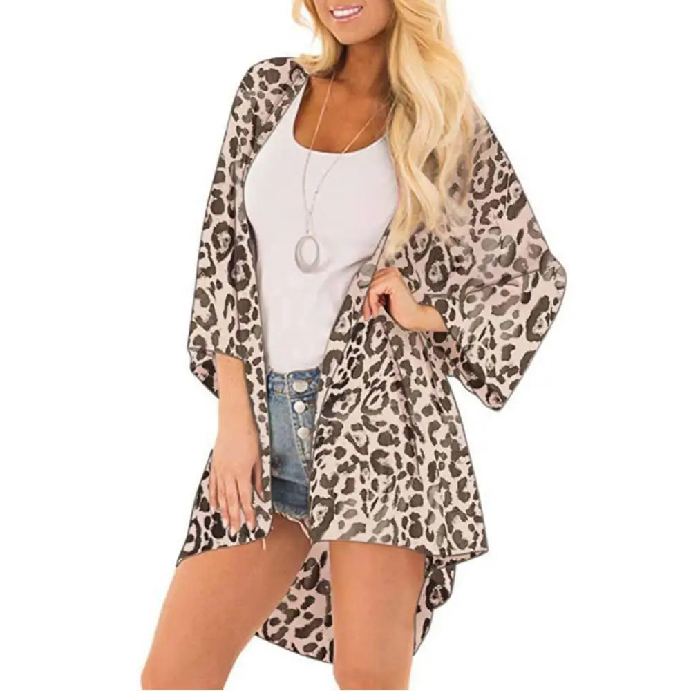 Take your beach outfit to the next level with this Women's Floral Leopard Print Kimono! Made with lightweight chiffon and featuring half sleeves, this kimono is the perfect way to add some coverage and style to your bikini. Plus, it also doubles as an anti-UV coat for outdoor adventures.