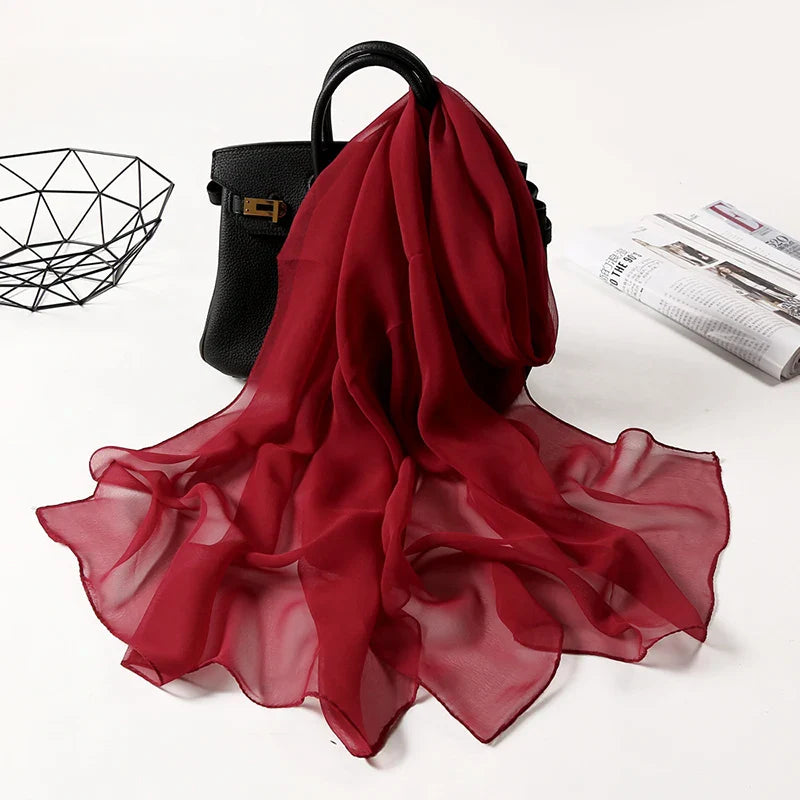 To maintain its beauty and softness, we recommend hand washing with mild detergent and air drying. This will ensure your chiffon scarf remains vibrant and elegant, season after season.