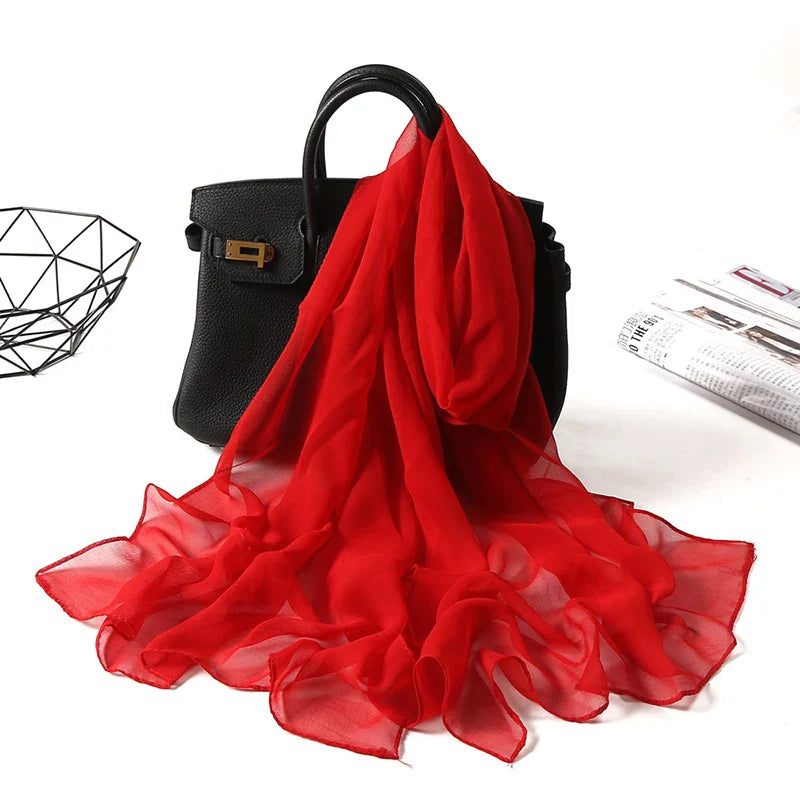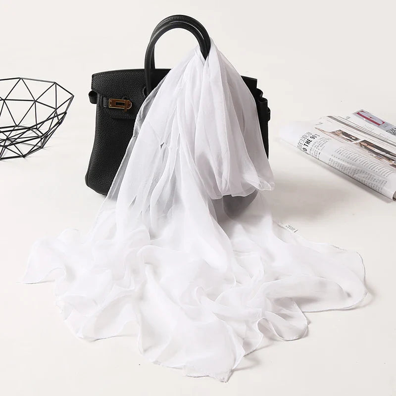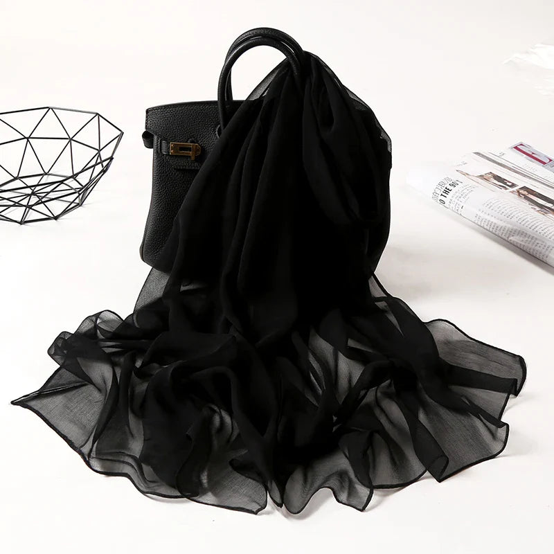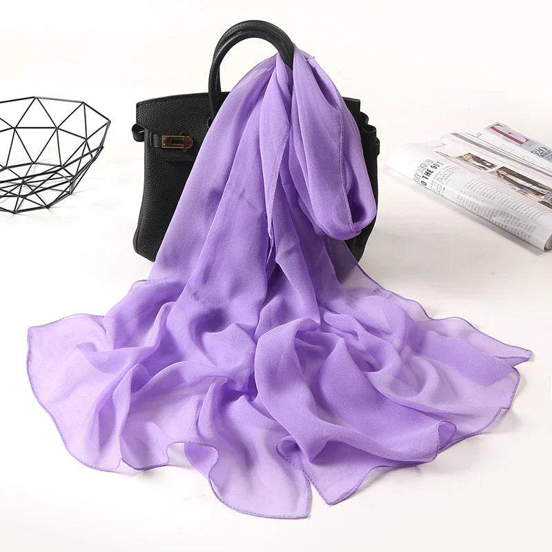 Discover the perfect accessory for your summer wardrobe with our Women Foulard Solid Color Chiffon Georgette Scarf Bandana Elegant Long Shawl Hijab Summer Sun Protection Beach Scarf. This versatile piece is crafted from luxurious chiffon, providing both style and comfort, making it an essential addition to your collection. Ideal for sunny days, this scarf offers excellent sun protection while also keeping you fashionable.