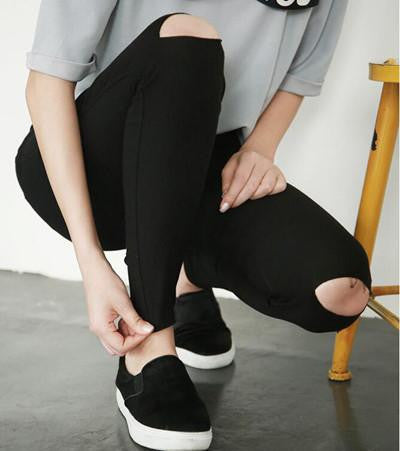 Crafted from a high-quality cotton blend, these skinny pencil hole pants offer exceptional elasticity and breathability, ensuring you stay comfortable all day long. The mid-waist design provides excellent support while accentuating your silhouette.