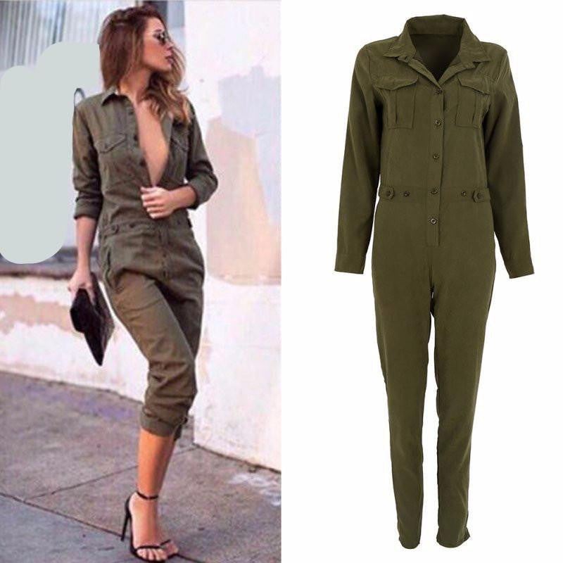 Elevate your style with the Women Jumpsuit Bodycon Party Lapel Long-sleeved Playsuit Trousers Stylish Army Green Rompers. This chic and trendy jumpsuit is perfect for any occasion, whether it’s a night out, a party, or a casual outing with friends. Designed to flatter your figure, this bodycon playsuit features a sophisticated lapel collar and long sleeves that combine elegance with comfort.