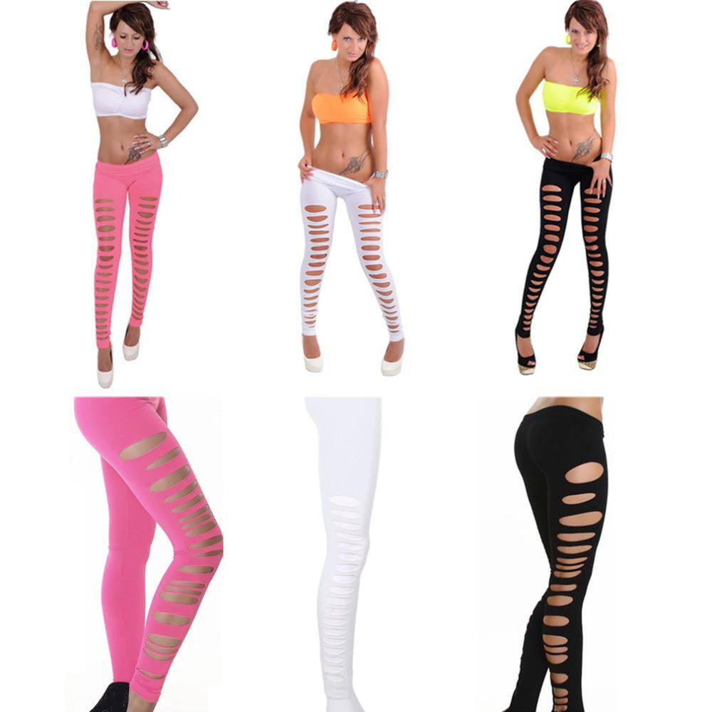 Available in various sizes, you can find the perfect fit that enhances your style. Don't hesitate to contact us for detailed sizing information. Step out in confidence and embrace your unique style with our Women Leggings Candy Color Skinny Ripped Hole Cut Out Leggings Pants Black/White/Pink Color today!
