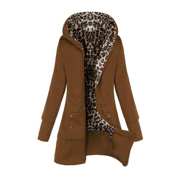 This slim jacket is not just a winter essential; it's a versatile piece that pairs beautifully with jeans, leggings, or skirts. Whether you're heading out for a casual lunch or enjoying a chilly evening stroll, the Women Leopard Fleece Zipper Hooded Warm Coat will elevate your look effortlessly.
