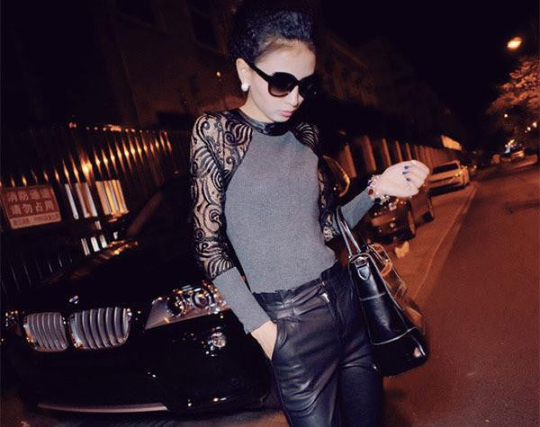 Elevate your wardrobe with the Women Long Sleeve Lace T-shirt Slim Knitwear Leather Crew Neck Knitted Tops. Experience the perfect blend of fashion and function today!