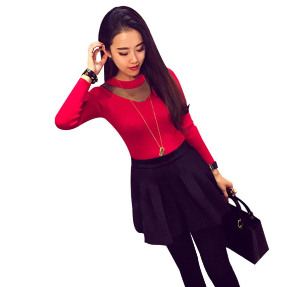 The Women Mesh Sheer Splicing Pullover Knitted Sweater Long Sleeve Slim Base Shirts Tops is not just a mere article of clothing; it’s a statement of style and comfort. Its regular clothing length ensures it fits perfectly with your favorite jeans or skirts, making it a versatile addition to any wardrobe. Whether you're heading to work, brunch with friends, or a date night, this sweater is sure to make you feel confident and fashionable.