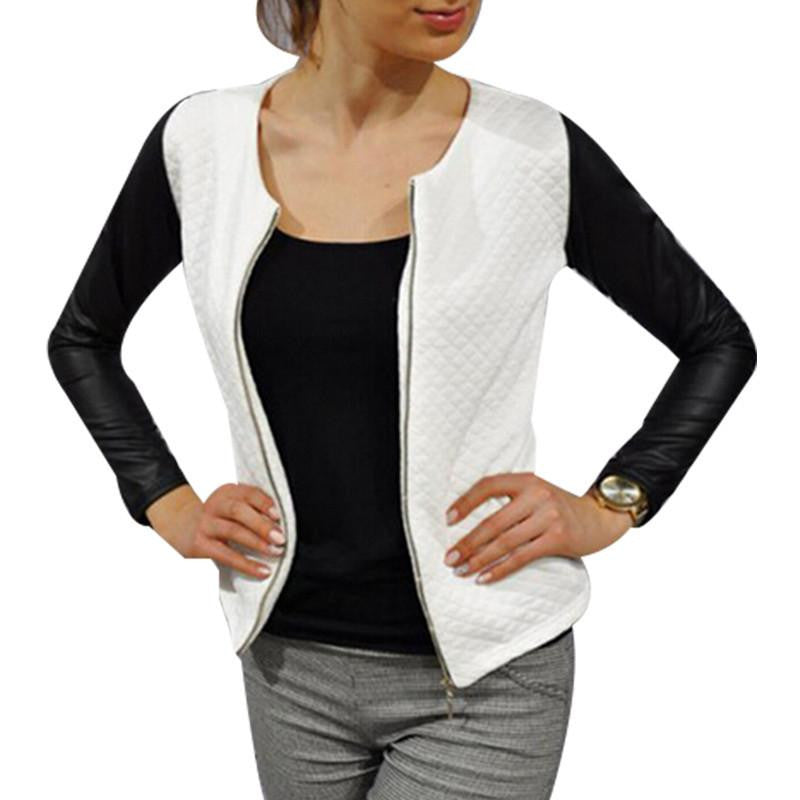 Don't miss out on this fashionable addition to your closet. Order your Women PU Leather Casual Zip Long Sleeve Chic Stylish Top Outwear Parka Coat Zipper Patchwork Baseball Jacket LXZ020M XXL today and transform your look effortlessly!