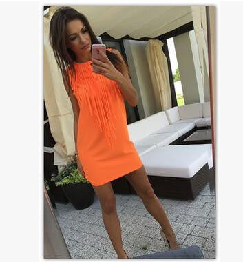 The Women Club Dress Tassel Sleeveless O-neck Short Mini Party Dress Womens Clothes Plus Size LJ4898C is the perfect blend of style and comfort, designed for women who love to make a statement. Featuring a chic O neckline and a sleeveless design, this dress is a must-have for any summer party or club outing. The alluring tassel decoration adds a playful touch, making it stand out in any crowd.