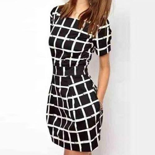 Introducing the perfect addition to your summer wardrobe: the Women Short Sleeve Plaid Slim Bodycon Casual Pencil Black Mini Dress. This stunning dress combines the timeless appeal of plaid with a sleek, bodycon silhouette, ensuring you look effortlessly chic and stylish on any occasion. Whether you're heading out for brunch with friends or enjoying a night out, this mini dress is designed to make you feel confident and comfortable.