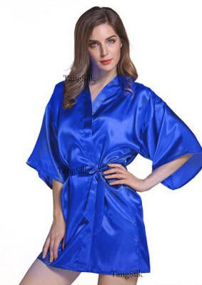 Elevate your loungewear collection with the exquisite Women Silk Satin Short Night Robe Solid Robe Fashion Bath Robe Bathrobe Wedding Bride Bridesmaid Robe. This stunning robe is designed to offer the perfect blend of comfort and elegance, making it an essential addition to your wardrobe. Crafted from luxurious faux silk satin, this robe promises to envelop you in softness while adding a touch of sophistication to your daily routine.