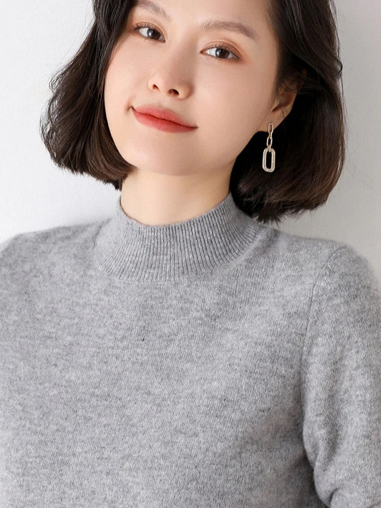 Take on new challenges in our Women Solid Half High Collar Cashmere Sweater! Keep warm in autumn and winter while making a statement with this bold top. Don't let the loose fit fool you, this knitted wool sweater provides a perfect casual bottoming shirt for your wardrobe.