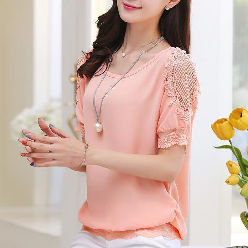 Enhance your wardrobe with this stunning women chiffon lace shirt short-sleeved thin women loose fashion shirts blouse – a must-have for every fashion-forward woman. Don't miss out on the chance to wear this beautiful piece; add it to your cart today!
