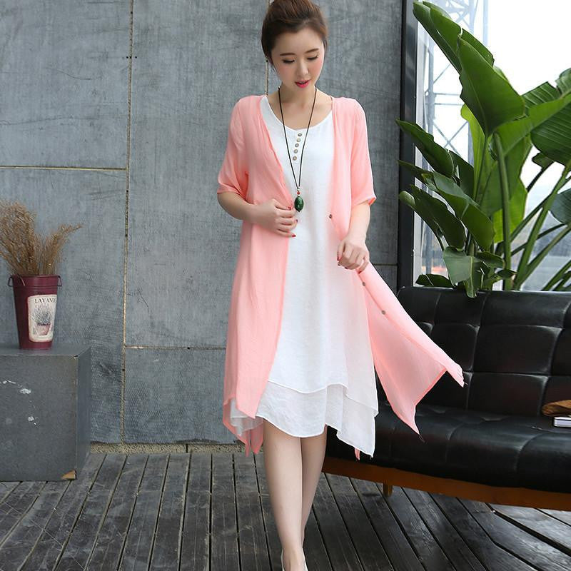 Made from a soft blend of cotton and linen, the Women Summer Dress Casual Loose Plus Size Solid White Vest dress and Cardigan Two pieces Sets Breathable fabric Dress is designed for durability and ease of wear. The lightweight fabric not only provides breathability but also drapes beautifully, enhancing your natural shape.