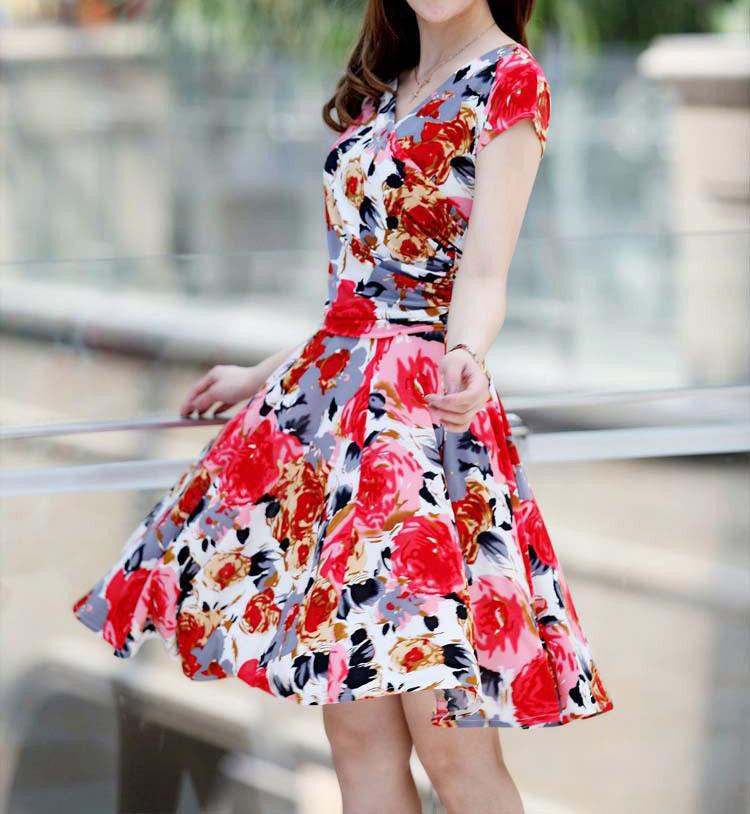 This floral mini dress speaks summer and fun. This colorful dress is fashionable and comfortable. This summer be carefree and happy.