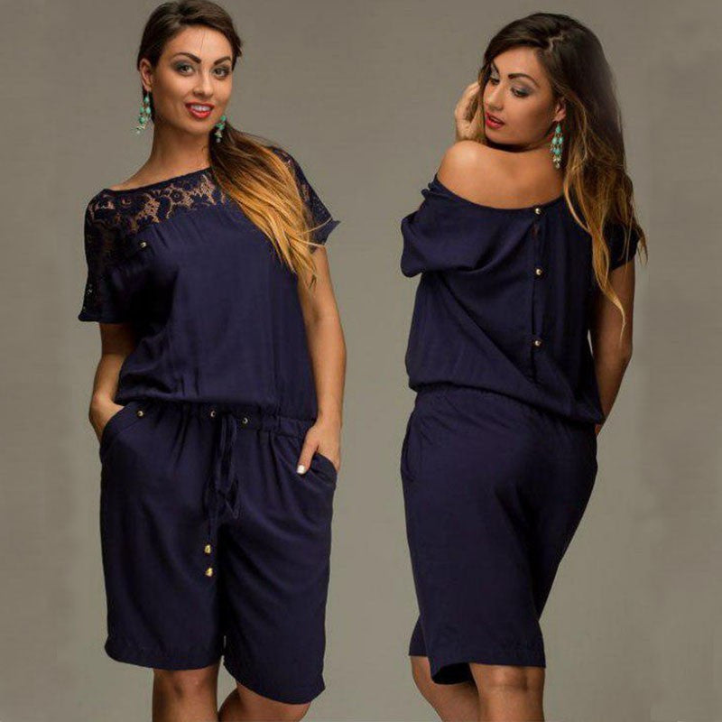 This stunning, knee length, casual jumpsuit with a lace decoration is just perfect for a day out with friends, it comes with a variety of colours to suit your type.