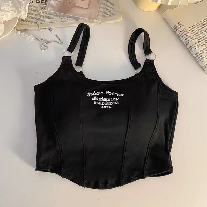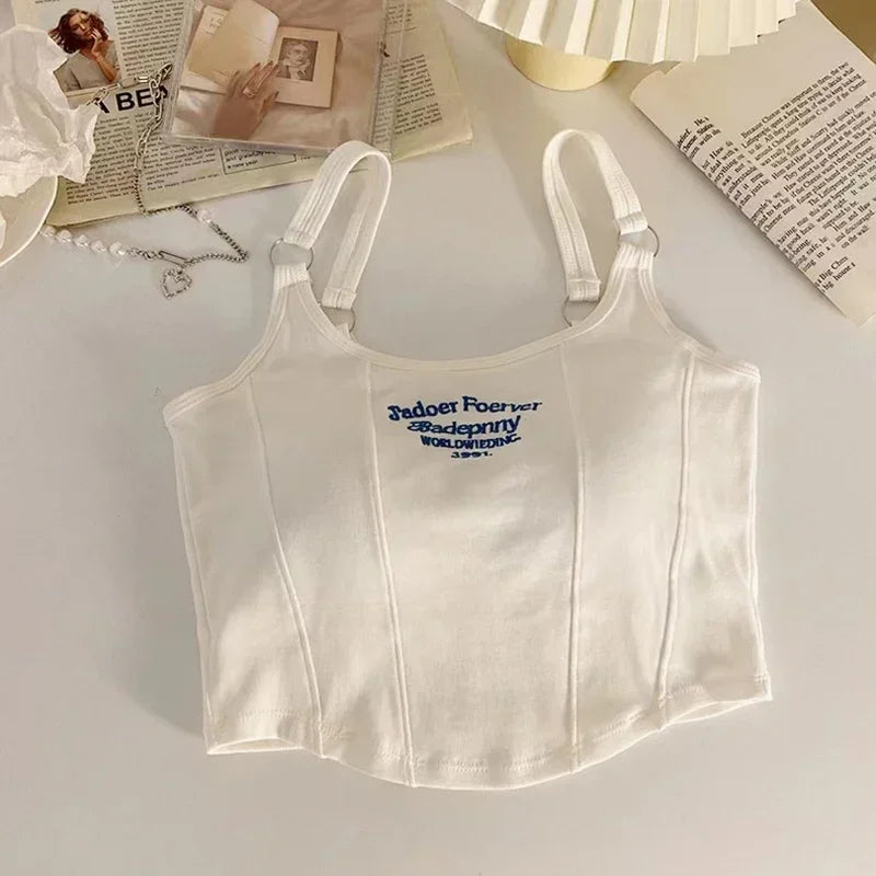 Don’t miss out on the chance to add this stunning piece to your wardrobe. Get ready to turn heads and make a bold fashion statement with our Women Summer Tops Sexy Camisole Square Collar Tank Top Y2k Slveless Female Crop Tops With Pad Fashion Vest Embroidery Letter!