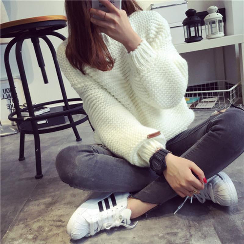 Our Women Sweater Thick Coarse Wool Knitted Lantern Sleeve Tops Fashion Casual For Knitted Pullover Sweater is hand-knitted with love and care. Elevate your wardrobe with this stunning piece and experience the perfect blend of comfort and style. Upgrade your winter wardrobe today!