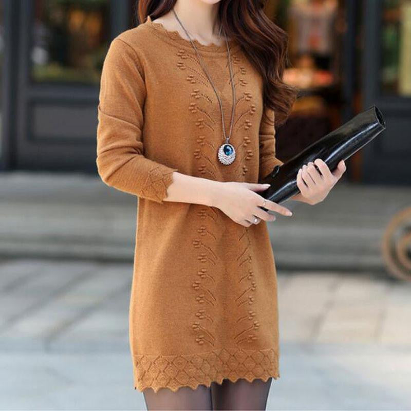 This Women Sweaters Dress Pullovers Warm Long Knitted Sweater is perfect for casual outings, cozy nights in, or even a day at the office. Pair it with leggings or jeans for a chic look, or dress it up with a skirt for a night out. Its above-knee length and sheath silhouette make it easy to layer with your favorite jackets or coats.