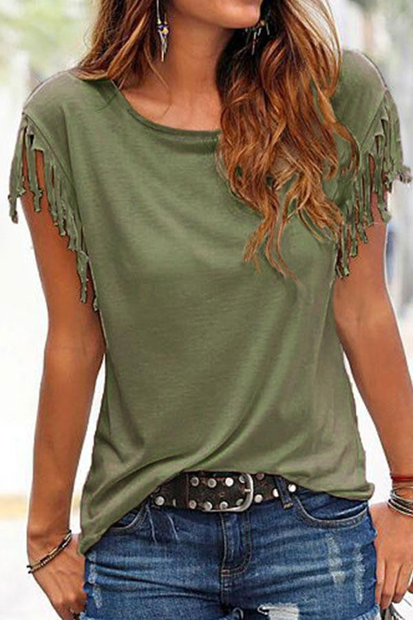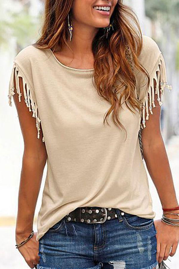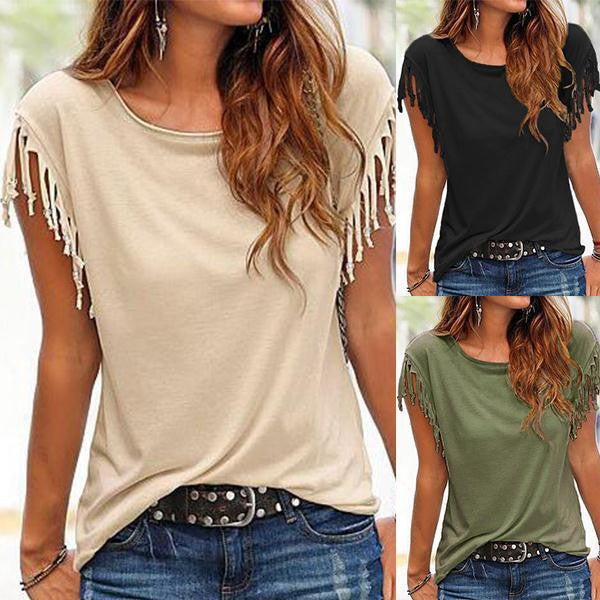 Elevate your wardrobe with our Women T Shirt Tops Knot Tassel Tee Crewneck Slim Fit Fashion Elegant. This stunning piece merges style and comfort, making it a must-have for any fashion-forward woman. Designed with a chic crewneck and trendy tassel accents, this tee is perfect for various occasions, whether you’re dressing up for a night out or keeping it casual during the day.